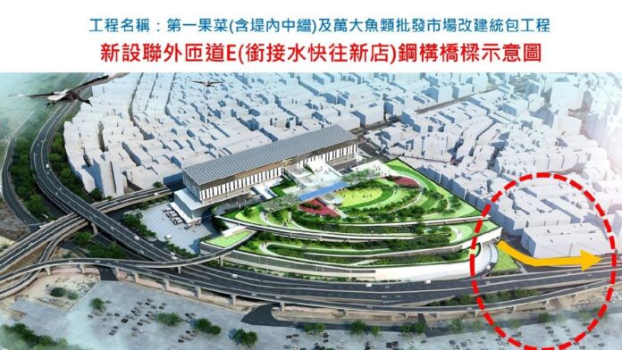 臺北市府工務局新建工程處工務科科長高銘伸表示,為疏解「第一果菜及萬大魚類批發市場改建統包工程」完成後周邊道路之車流,將於市場主體建物2樓富民路側新建2處匝道匯入水源快速道路南下及北上車道,使市場內車輛可直接由新建匝道沿水源快速道路迅速離場,避免車輛集中萬大路、富民路等主要路口,提高該等道路之的服務水準。