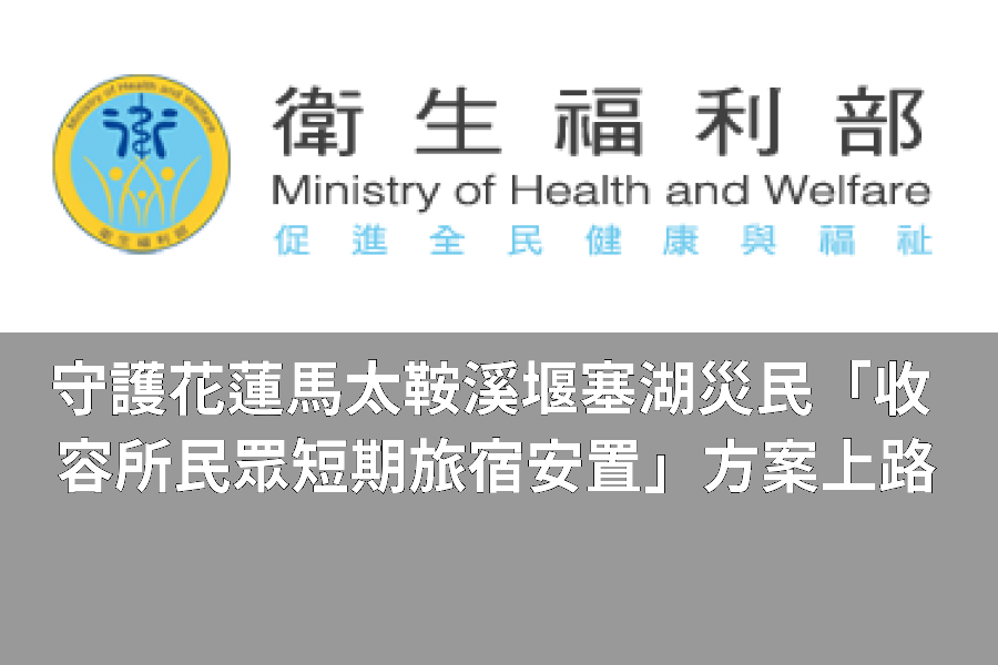 花蓮縣馬太鞍溪堰塞湖溢流災害事件中,不少民眾家園被摧毀,暫時安置於收容所內,衛生福利部配合行政院啟動「收容所民眾短期旅宿安置」方案,針對花蓮縣政府開設臨時收容處所內的災民,提供短期旅宿安置,費用由政府負擔,期盼能夠減少災民的後顧之憂。