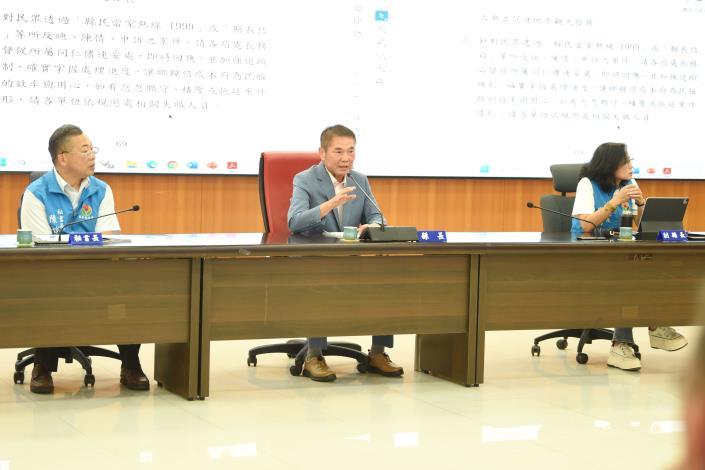 另外,有關縣民當家熱線1999或縣長信箱反映、陳情及申訴案件,相應局處應盡速妥為處理、即時回應、強化追蹤機制,確實掌握處理進度,讓鄉親能感受到縣府的用心和為民服務效率。
