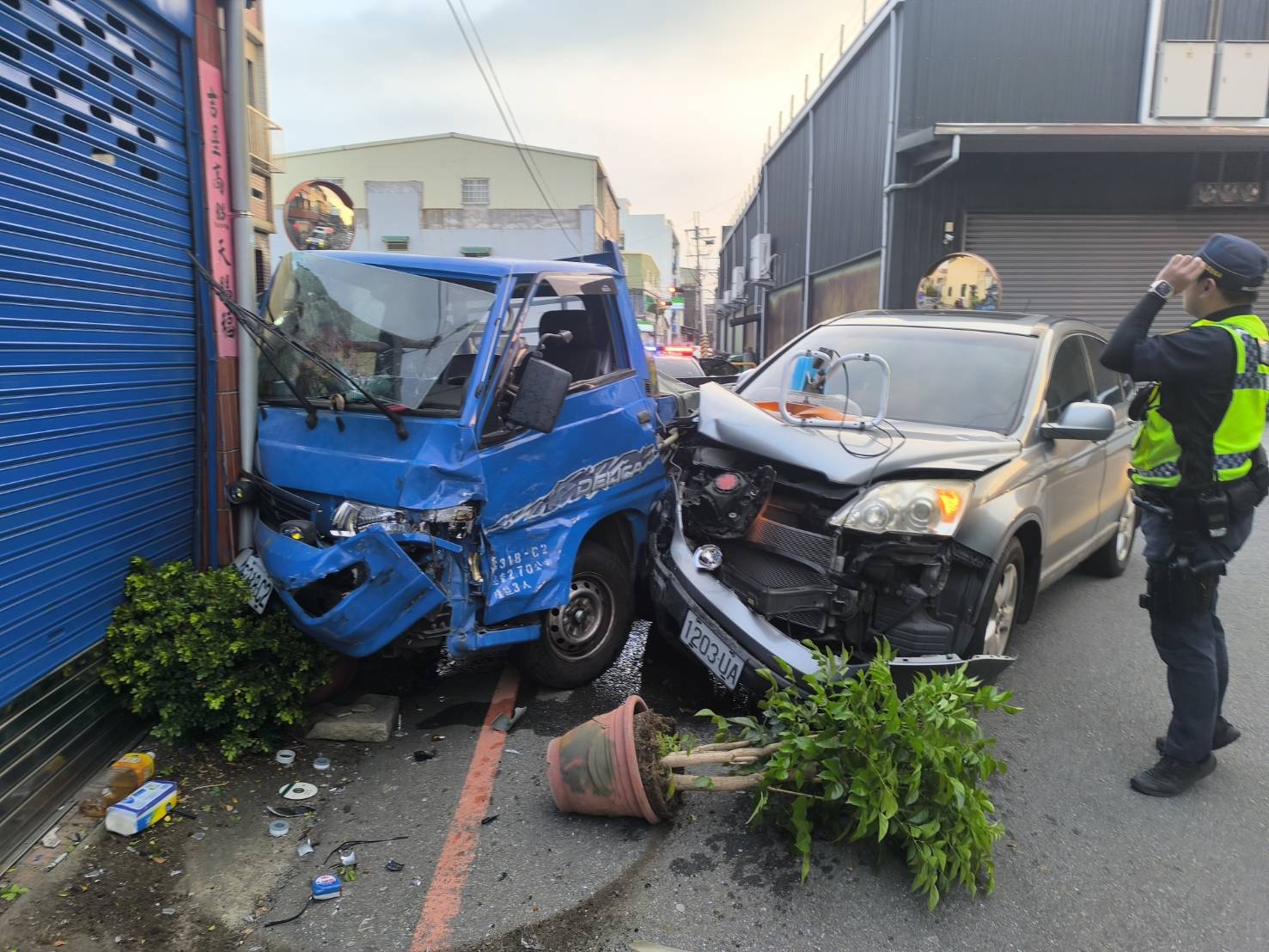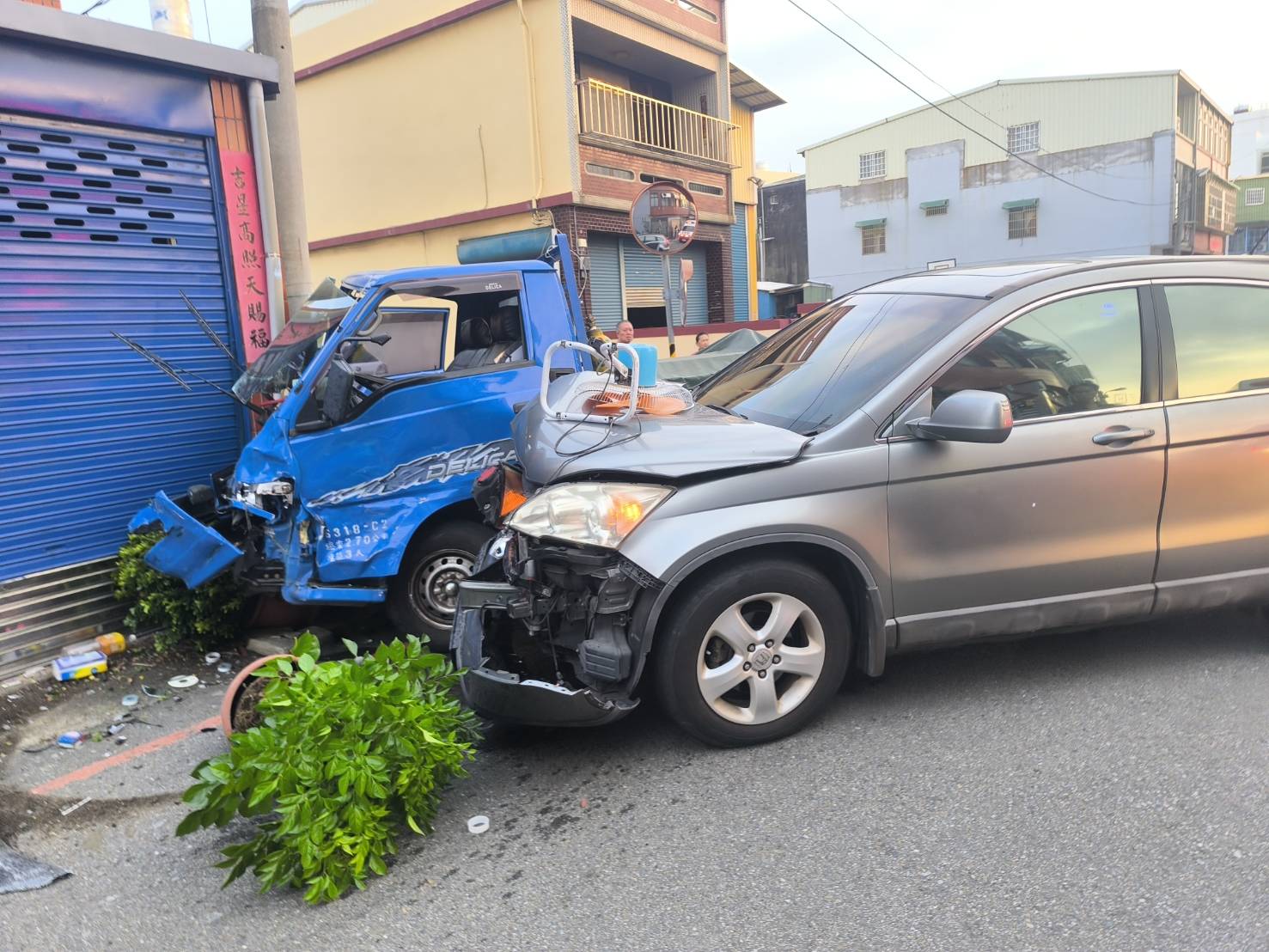 抵達現場後,發現一部休旅車與小貨車擦撞,且波及一旁民宅,現場兩車損毀嚴重,所幸兩位駕駛人皆意識清楚、生命徵象穩定,並均表示拒絕送醫。
