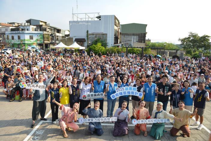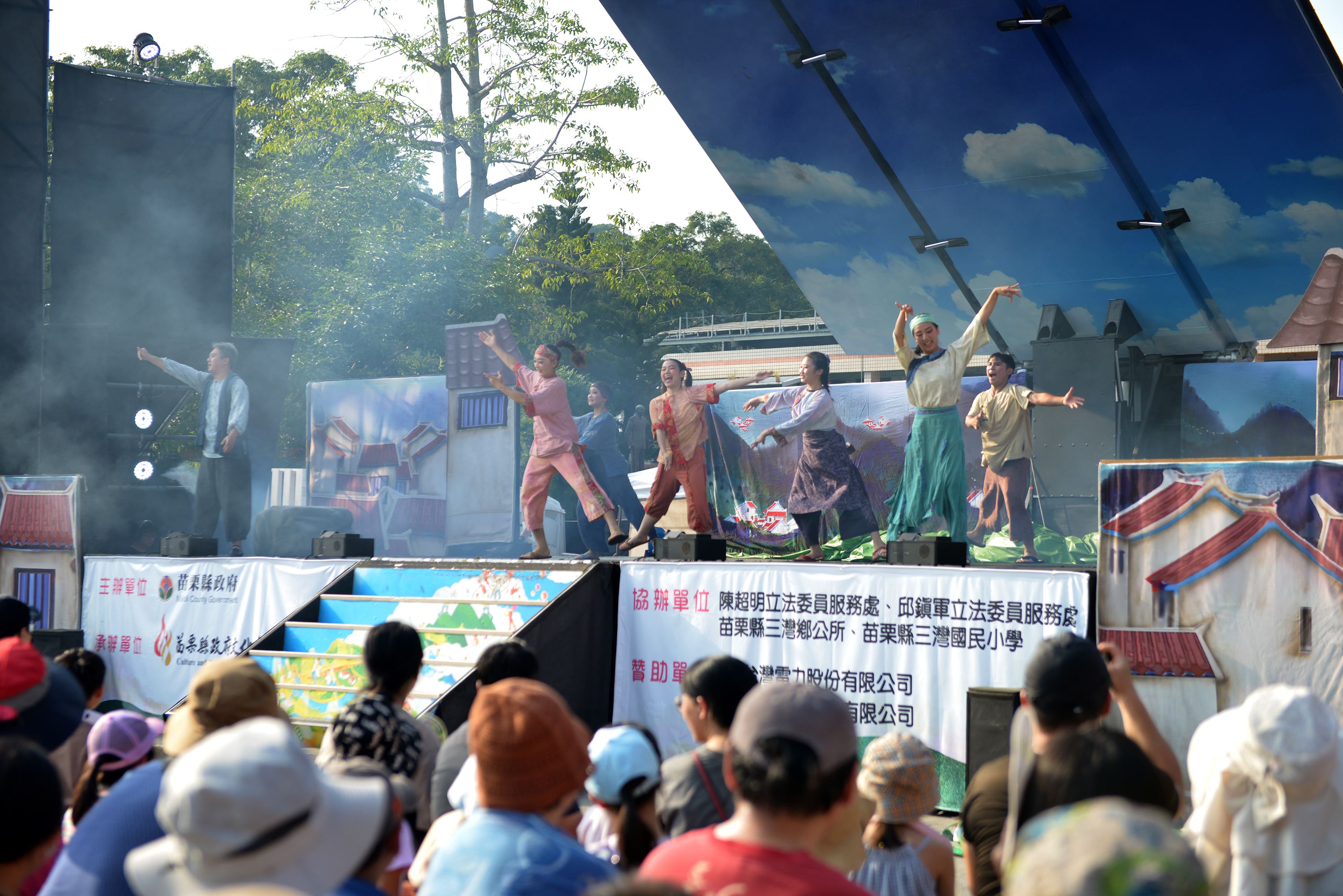 2025苗栗縣藝術種苗播撒計畫第二場27日下午在三灣五穀廟前廣場登場,由紙風車劇團帶來客家新童話《寶莉回家》舞台劇,活動吸引許多來自苗栗、新竹甚至台中、桃園等地的親子家庭到場觀賞,廟埕化身為童話舞台,孩子們的笑聲與驚呼聲交織成一場充滿魔力的藝術饗宴。