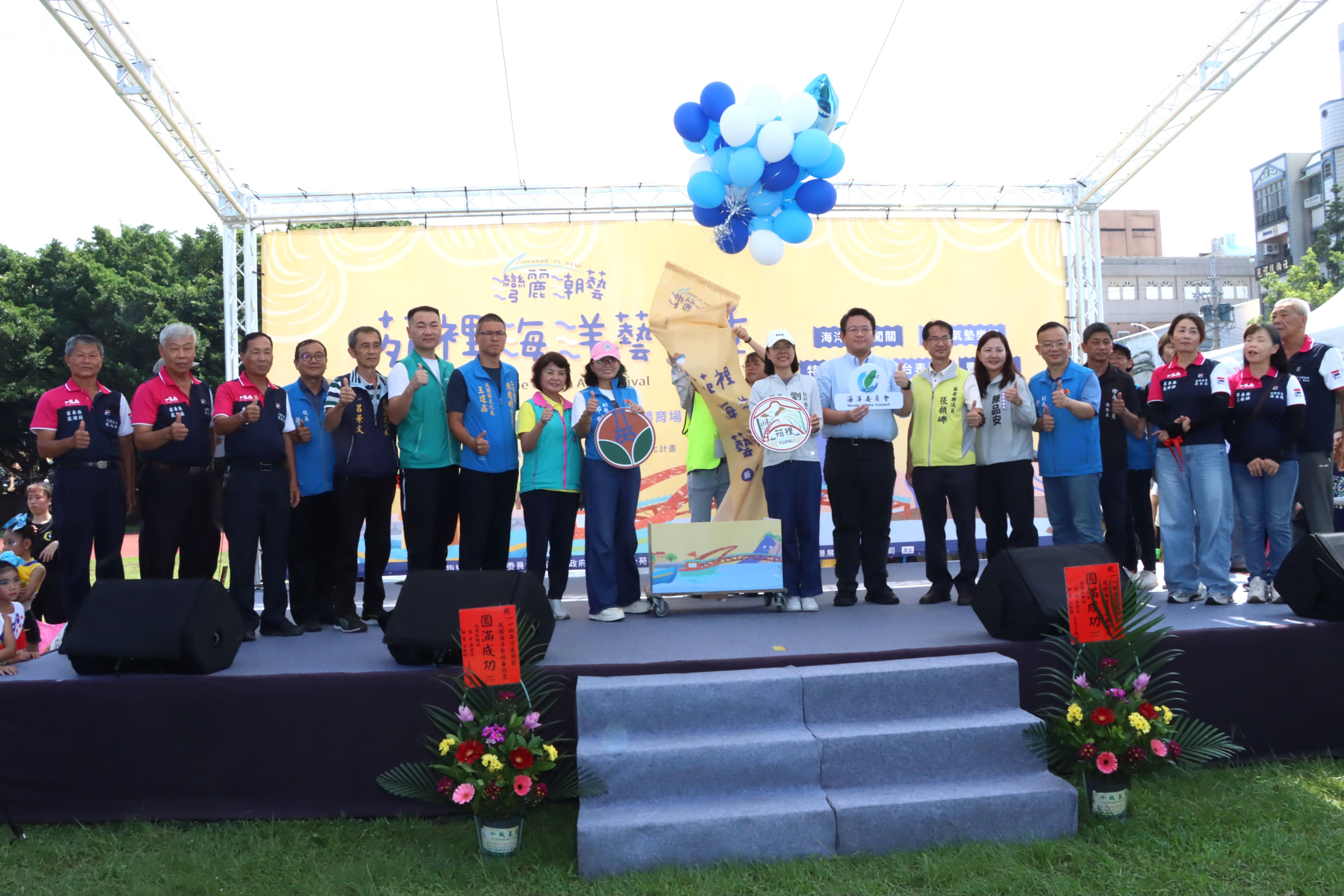 今日活動由苗栗縣副縣長邱俐俐與海洋委員會科技文教處副處長吳哲瑋、縣議員周玉滿、陳品安、張顧礫、翁杰、徐永煌秘書、苑裡鎮長劉育育及地方代表等共同揭開序幕。