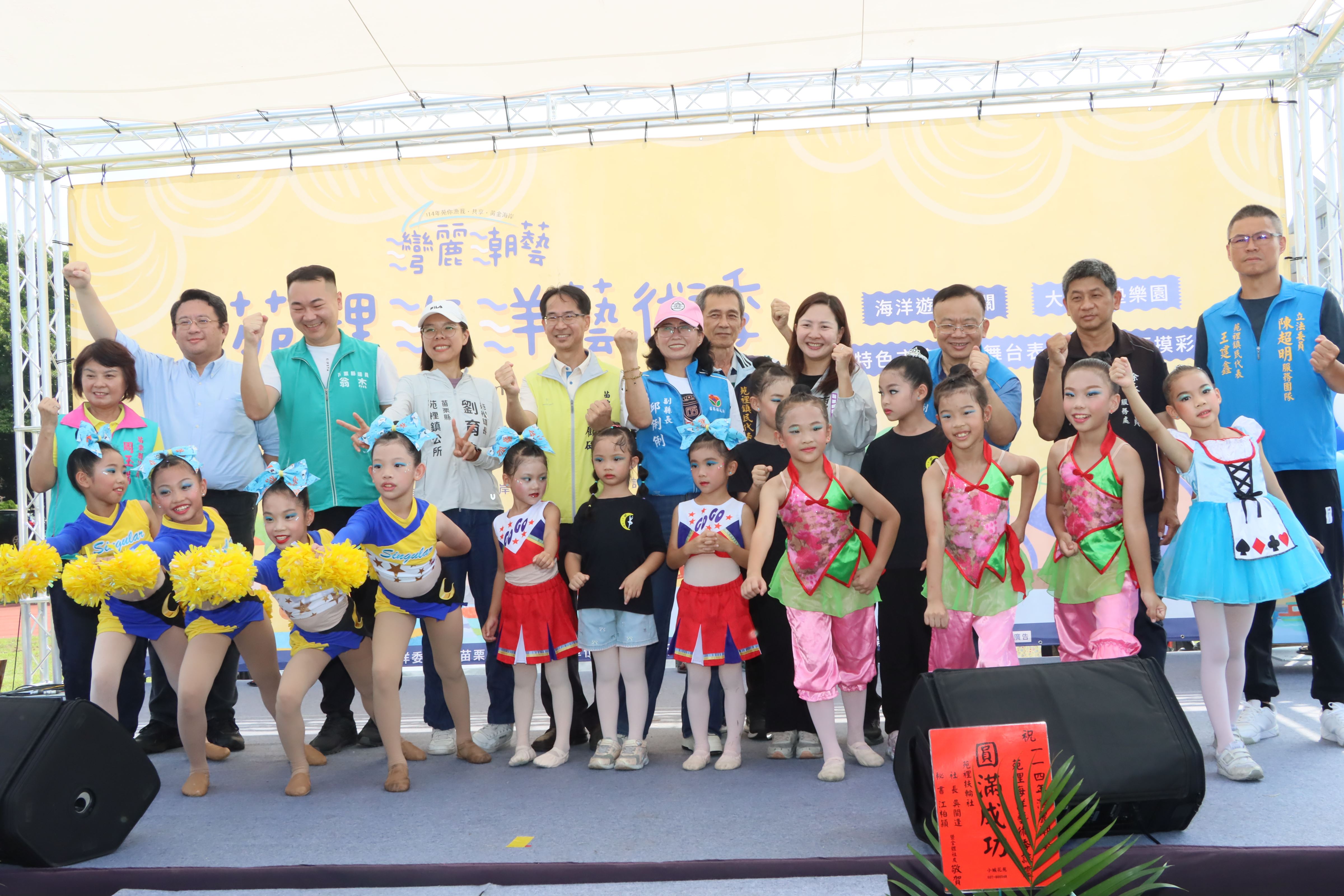 苗栗縣苑裡鎮公所與海洋委員會攜手推動「114年苑你漁我‧共享黃金海岸」計畫,於今(27)日上午在苑裡鎮立體育場盛大舉辦 114 灣麗潮藝「苑裡海洋藝術季」成果發表會,活動以「臺灣海洋文化教育」為核心,展現一年來在地教育與社區推廣的豐碩成果。
