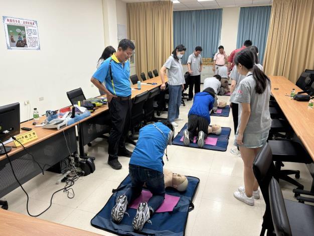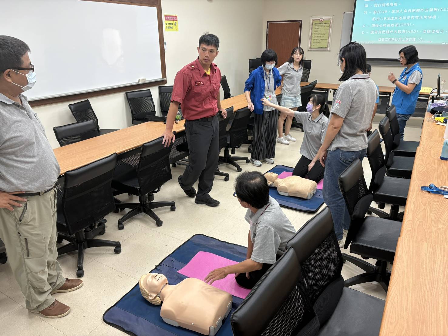 公館分隊於10月1日上午前往公館鄉公所,辦理CPR+AED急救技能宣導活動。此次課程由具高級救護技術員資格的消防同仁擔任講師,課程內容包括CPR基本操作流程、胸外按壓正確位置與技巧,並結合AED設備實機操作與情境模擬演練,讓學員透過實作強化對急救技能的理解與應用。