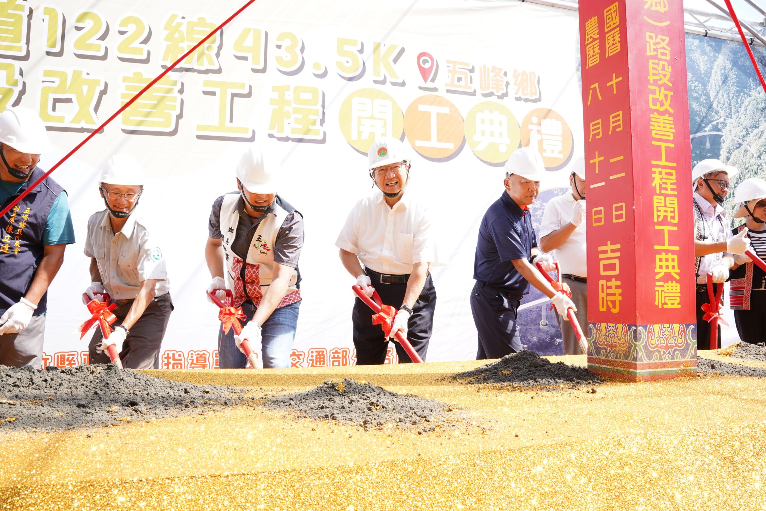 縣長楊文科今早率縣府團隊,與立委盧縣一、前立委孔文吉、交通部公路局北區養護分局長謝俊雄、雪霸國家公園管理處長林文和、縣議員張益生、五峰鄉長秋維書、五峰鄉代會主席秋美玉等地方民意代表及居民共同出席開工典禮,祈求工程順利圓滿,也感謝地方民意代表及鄉親一路支持,並承諾將嚴格督導施工品質與安全管理,確保工程如期如質完工,打造更安全便捷的交通環境。