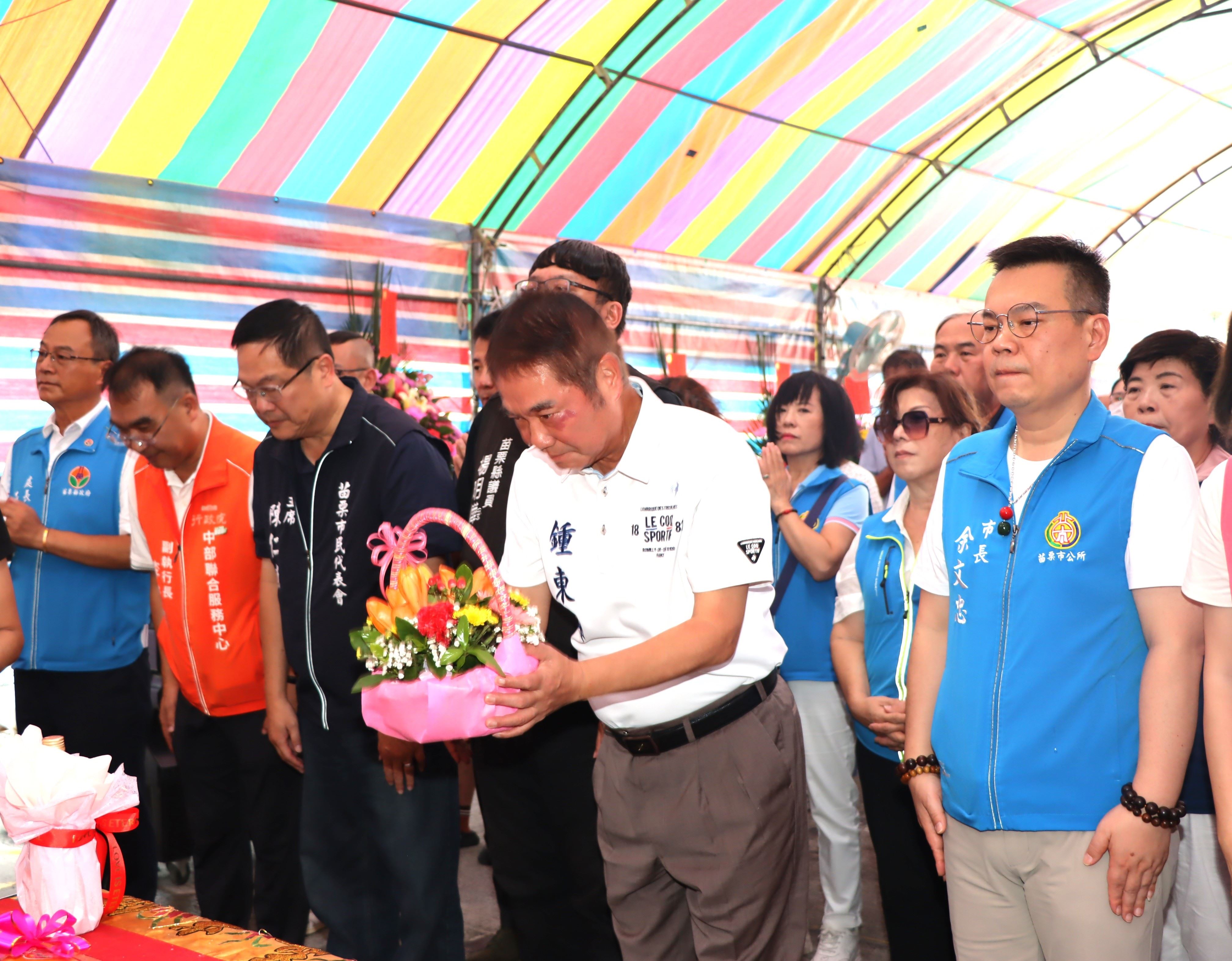 今天下午在大千醫院碧英大樓旁室外停車場舉行的苗栗市萬善祠及范茍祠骨灰(骸)罐起掘前祈福法會,由縣長鍾東錦主祭,縣議員徐筱菁、楊明燁、苗栗市長余文忠、代表會主席陳仁杰、副主席王封台、代表、里長、縣府民政處長巫恒昭等人陪祭,先聽殯葬業者簡報說明法會及起掘遷移的作業程序,接著虔誠焚香、獻花、獻酒祭祀,共同 為先人祈福,祝禱骨灰(骸)遷移安置作業能夠圓滿順遂。