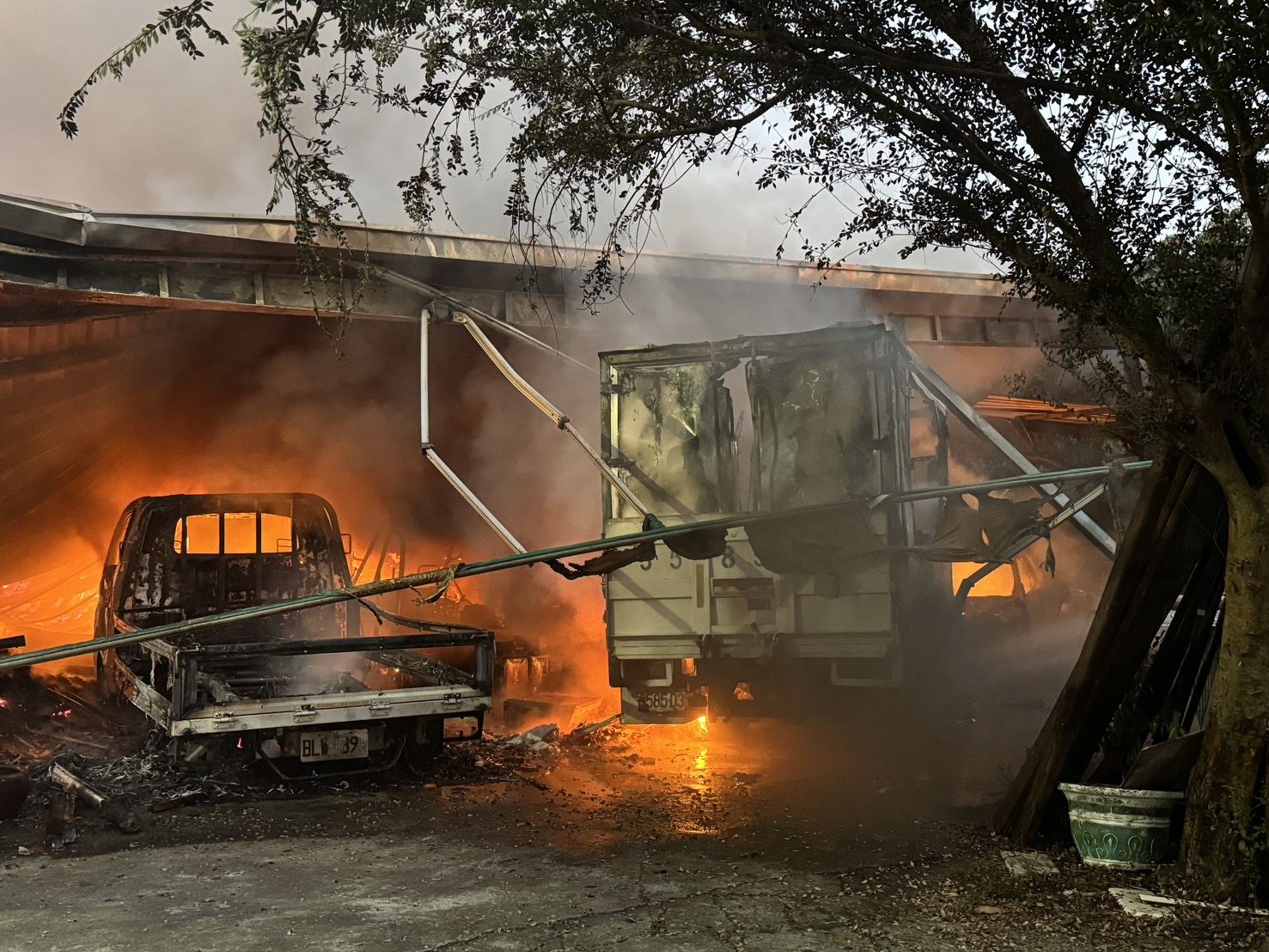 苑裡分隊於10月2日傍晚接獲民眾報案,表示蕉埔里有一民宅旁倉庫起火燃燒,苑裡分隊立即出動前往。現場為民宅旁的倉庫,到達時已全面起火燃燒,並延燒至週邊的二台貨車與一台轎車,消防人員立即佈署2條水線控制火勢,現場無民眾受傷,而由於該倉庫裡堆放大量傢俱造成悶燒,因此立即通知重型機具進駐挖掘以方便進行殘火處理,避免因雜物堆積悶燒而造成二次復燃,消防人員與義消們歷經4個小時的搶救,直到夜間才順利撲滅火勢。