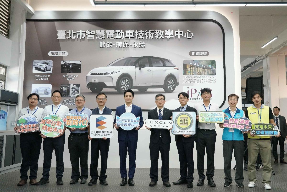 臺北市智慧電動車技術教學中心係以原有電動車技術教學中心為基礎打造,本次升級首先獲得納智捷汽車股份有限公司捐贈首款國產純電休旅車 LUXGEN n7,教育局為推動自動化技術課程,亦添購業界最新電動車專業維修檢測工具設備儀器、AI智慧機器手臂車檢驗平臺、電動車輪胎半自動拆裝平臺、ADAS智慧駕駛四輪定位儀、雙柱頂車機、充電樁、滅火毯等安全防護設備;最大亮點在於導入機械手臂檢測,透過透過AI深度學習模型,即時呈現精準檢測結果;此外,亦導入專業教材與技術認證制度,完善全套智慧電動車課程鏈。透過產官學合作,臺北市希望讓學生不只學會汽車修護技術,更能具備跨域與創新能力,為智慧交通與綠色能源產業培育堅實人才。