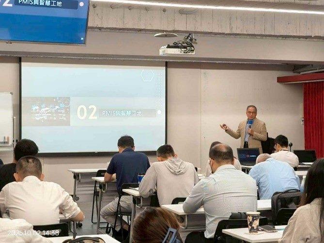 另外,此次活動邀請多位跨領域專家進行分享,由中興工程顧問公司林芳輝資深協理以「專案管理資訊系統(PMIS)整合智慧工地的實踐策略」為題,說明如何透過系統化規劃與物聯網(IoT)感測器應用,以提升施工安全及環境管理效率;國立臺灣大學謝尚賢教授深入解析人工智慧(AI)技術於工地中的多元應用,包括智慧視覺監控、自動報告生成及能源與污染監測,展現AI於提升工地永續管理的前瞻實務。活動最後藉由問答討論時段,促進技術交流與經驗分享,強化跨界合作與知識整合。