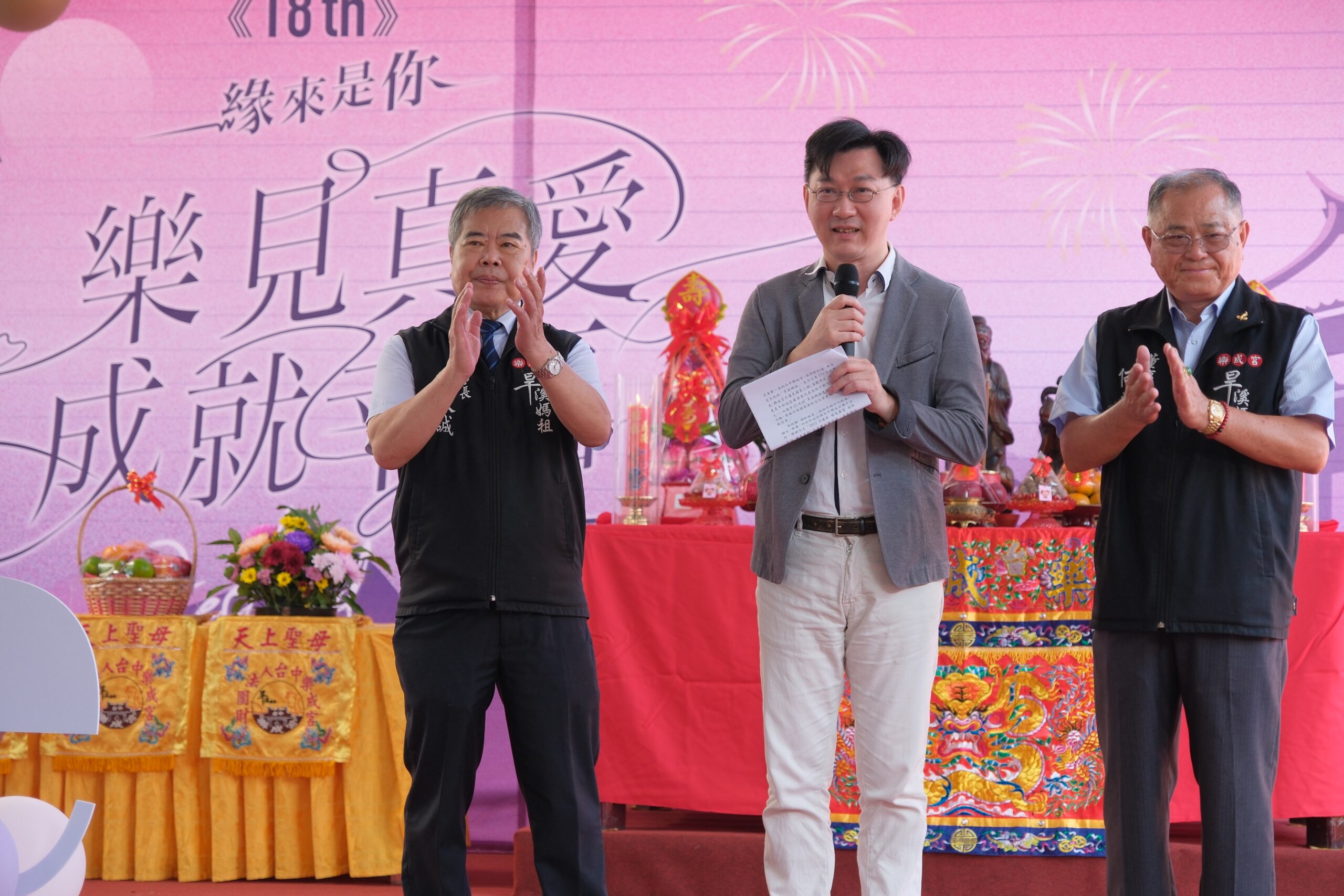 內政部今(4)日與財團法人台中樂成宮攜手合辦「2025月緣節—樂見真愛成就幸福 緣來是你 月老慶生締佳緣」未婚聯誼活動,由內政部政務次長董建宏與台中樂成宮董事長何敏誠揭開序幕,立法委員何欣純、羅廷瑋、立法院副院長江啟臣服務處秘書、臺中市政府民政局副局長陳寶雲一同帶領現場400位未婚男女進行祈福儀式,為青年朋友送上祝福,期盼中秋佳節前夕在月老星君庇佑下,大家都能早日覓得佳偶,實現「月圓人團圓」的美好心願。