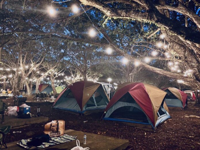 2025秋遊星夜季昨(4)日正式登場,首場「星野之夜」兩天一夜露營活動人潮滿滿,小叮噹科學主題樂園露營區帳篷林立,以燈串與小旗幟點綴營區,隨著燈光點亮,草地瞬間化身為充滿活力的夜宿村落。現場也規劃露營車展示與造型獨特的六芒帳棚,讓參加者感受到多元露營風格的魅力,宛如置身戶外嘉年華。