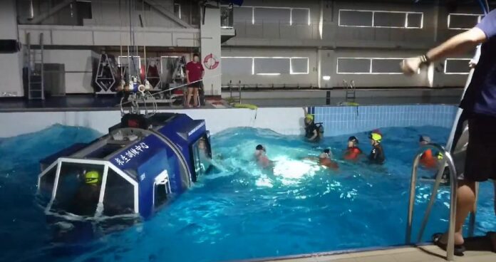國軍空勤人員求生訓練中心:棄艙水下逃生訓練-慢速下降