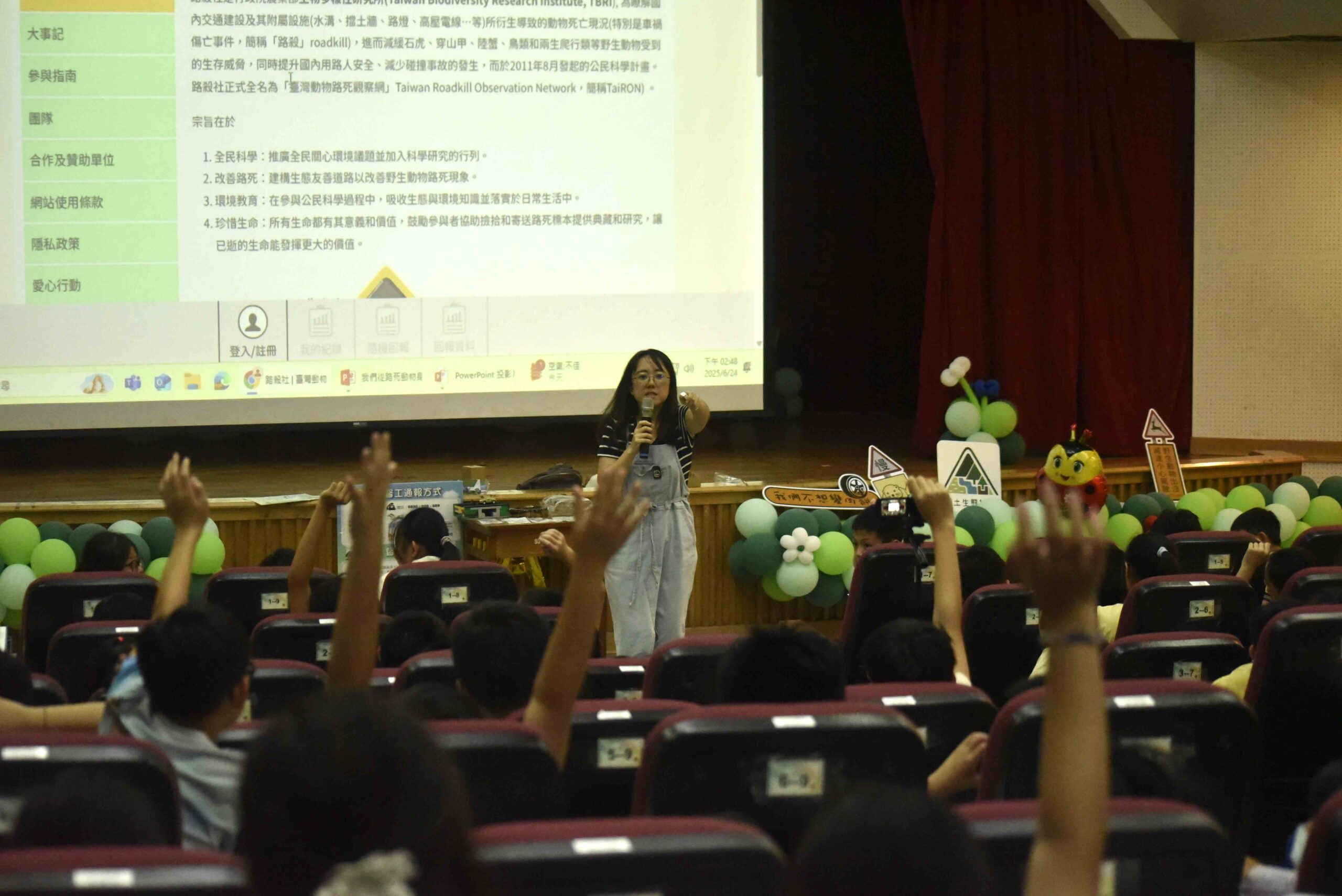 除了設置生廊道道,農業局持續於新店、八里、樹林、貢寮、板橋、土城、石碇等地辦理校園路殺防治課程,累計超過1,200名學生參與。課程內容透過實際案例與照片,讓學生認識路殺問題,並學習使用「臺灣動物路死觀察網」進行紀錄,將保育理念轉化為實際行動,透過校園向下扎根,將野生動物保護的意識向外延伸至家庭與社區。