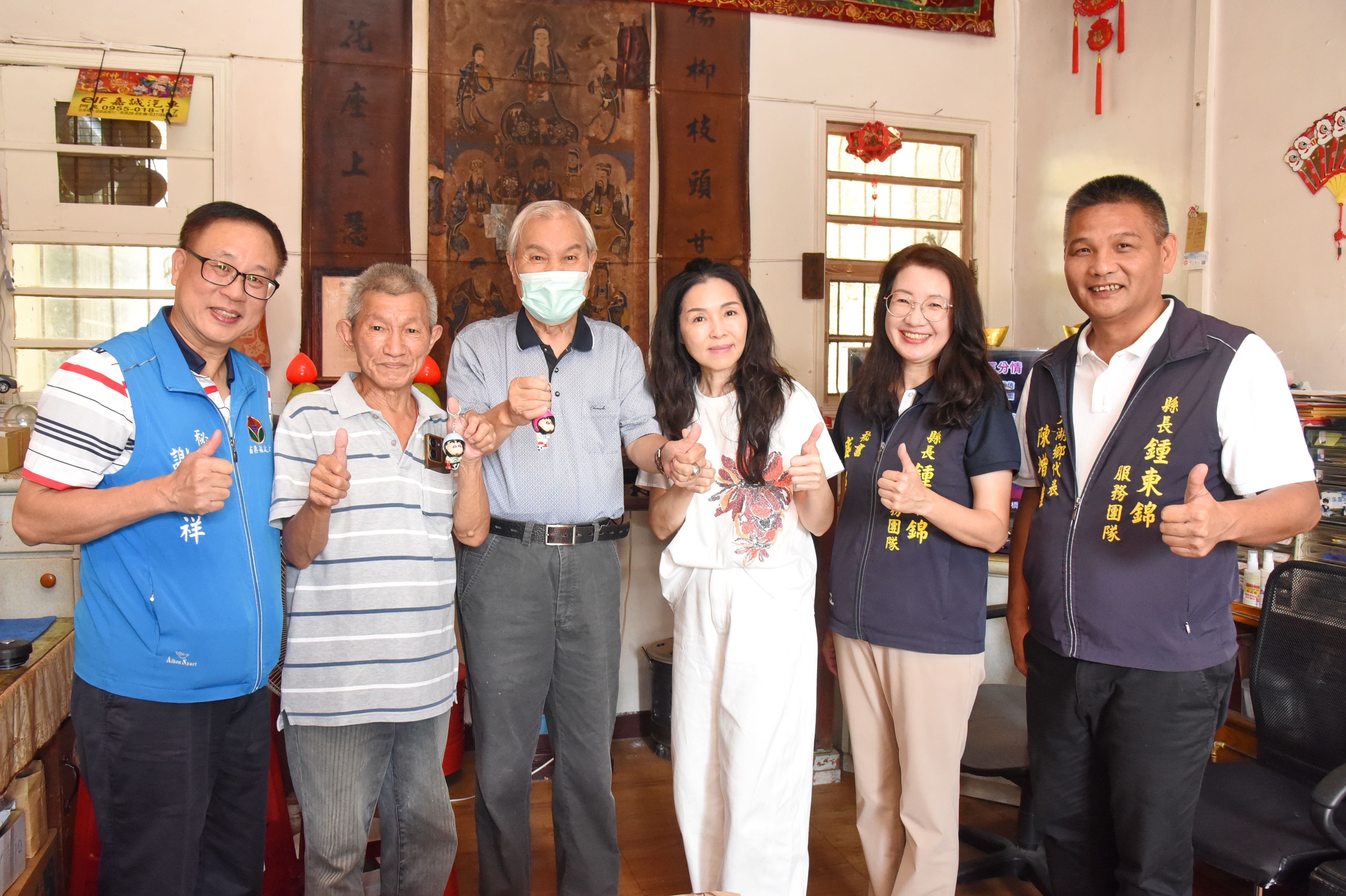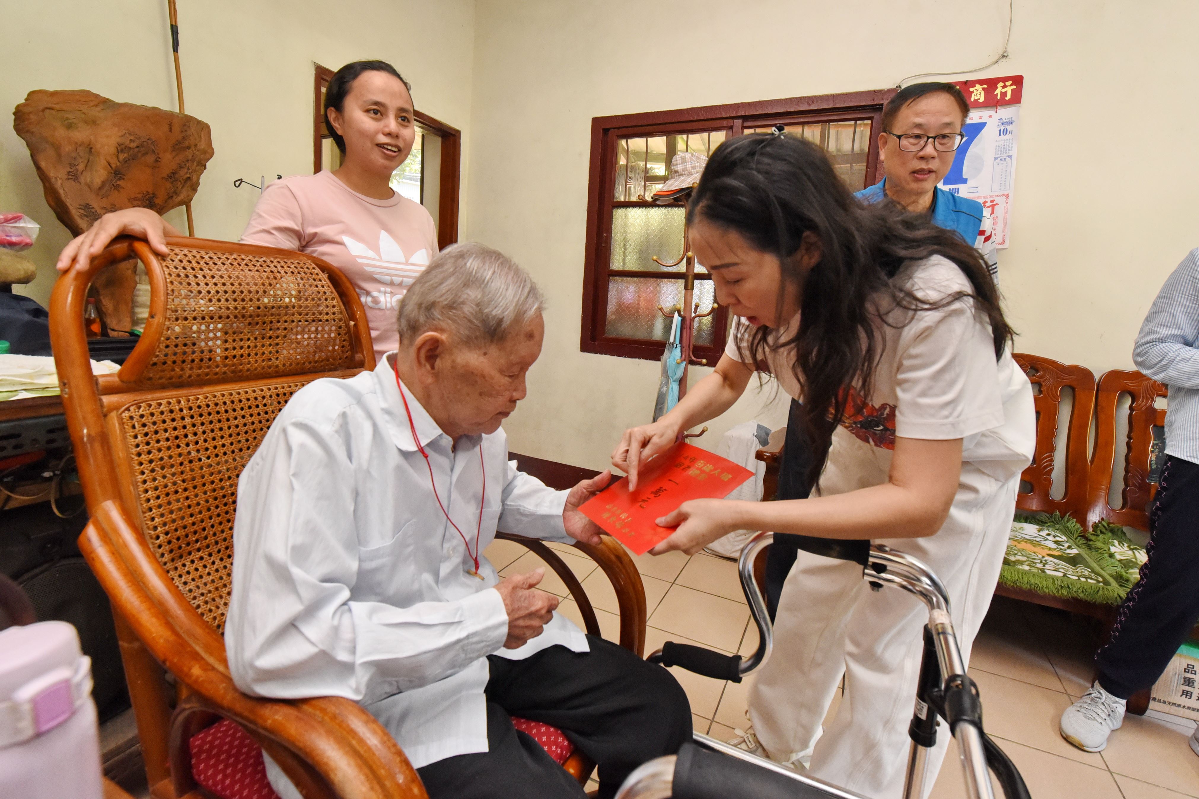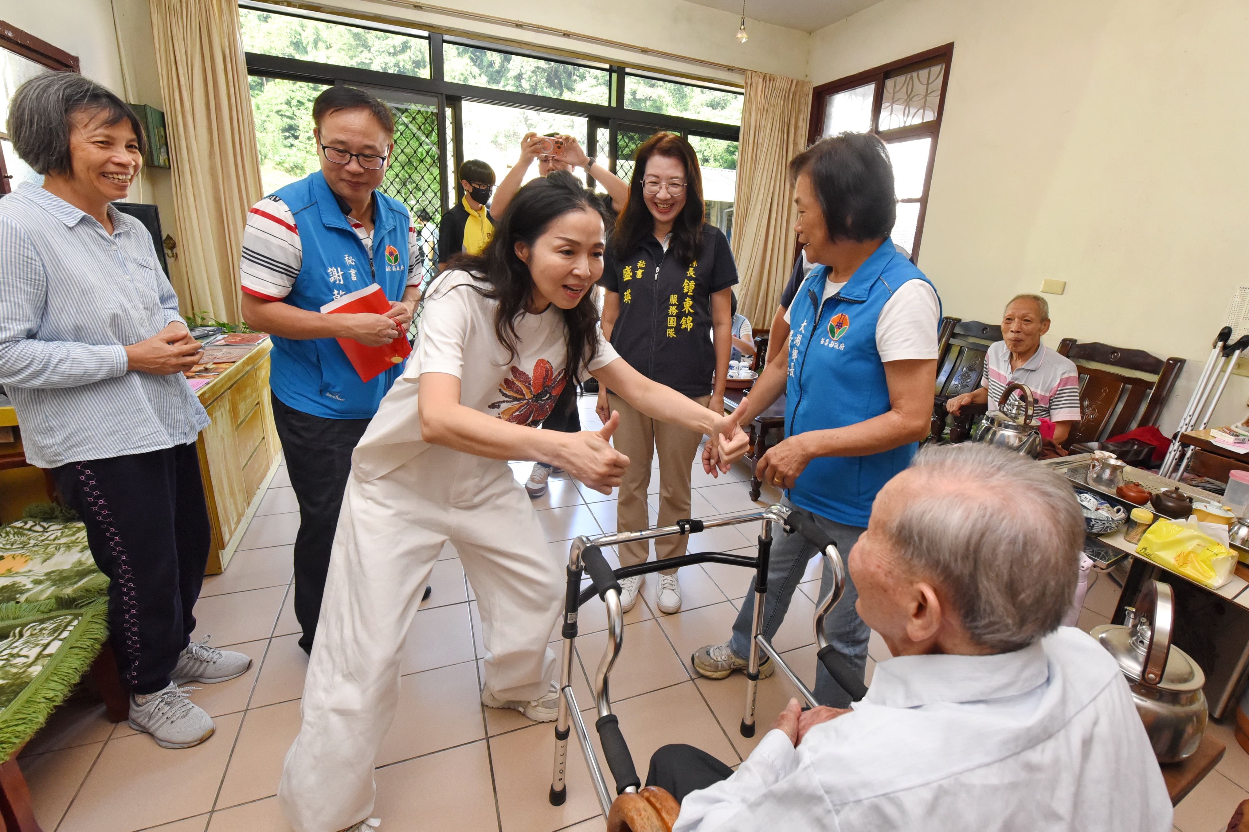 其中,彭涂靜妹老太太目前與次子彭錦機同住,長子彭錦威也回老家團聚分享喜悅;老太太原本身體狀況不錯,能夠自己行動,因2年半前意外跌倒住院1個多月後,健康狀況略受影響。縣長夫陳美琦看到居家環境整齊乾淨,老人家也獲得細心陪伴和照顧,讚許家人孝行可嘉。
