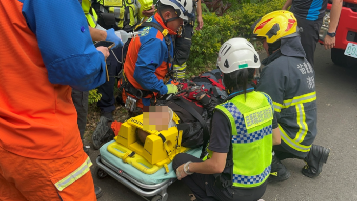 苗栗縣政府消防局第三救災救護大隊三灣分隊於10月6日接獲報案,有民眾於三灣鄉台三線103.5K處十股橋旁附近跌落邊坡,分隊立即出動前往搶救,並同時請中心派遣頭份救助器材車前往支援。救護人員抵達現場,發現民眾騎車不慎跌落約6米邊坡,意識清楚,並表示左胸及左大腿疼痛無法行走,救護人員給予頸圈、長背板、抽吸式護木及籃式擔架固定,並由頭份救助器材車利用吊掛方式將患者安全送至平面道路後立即送往醫院。