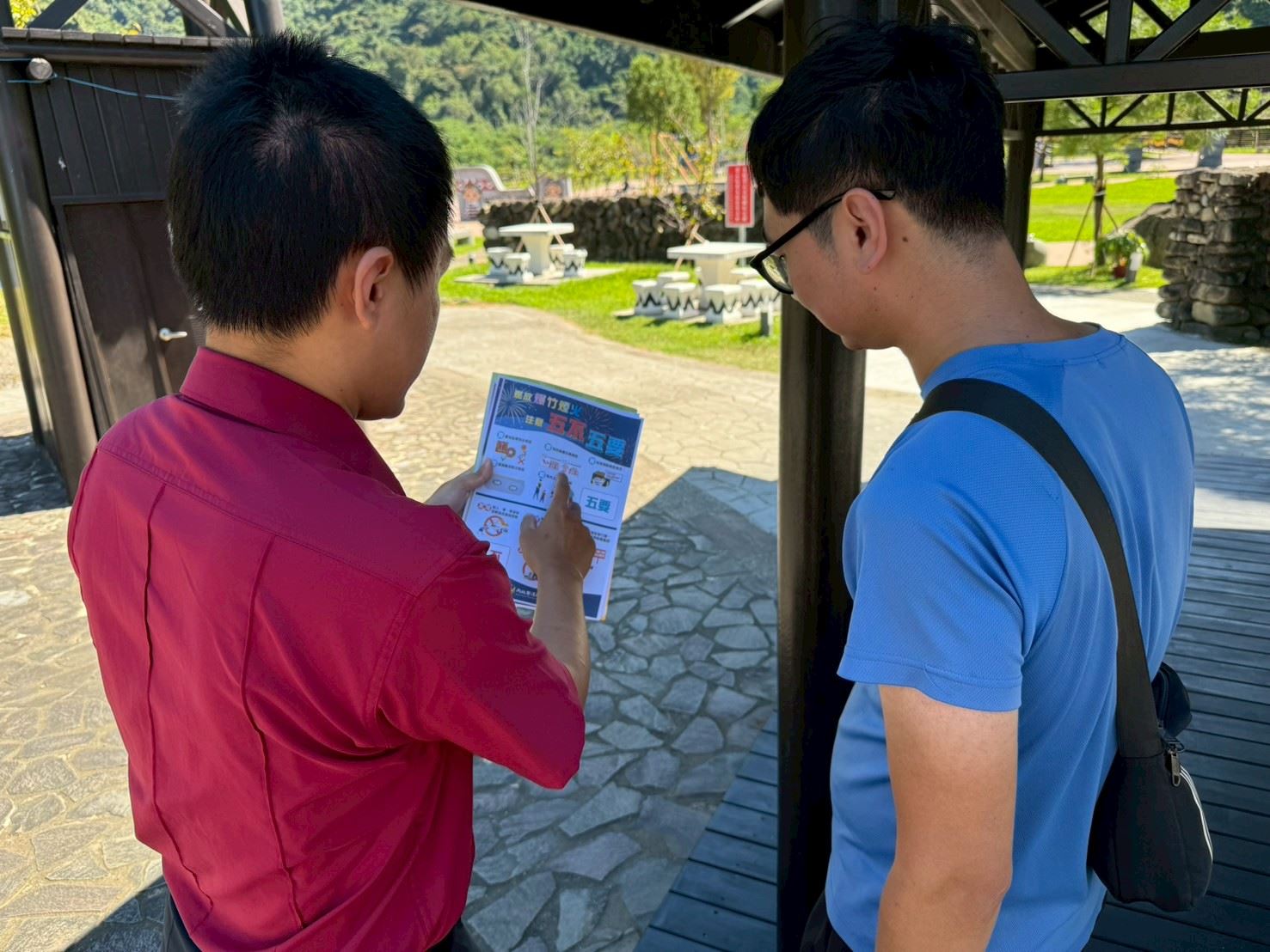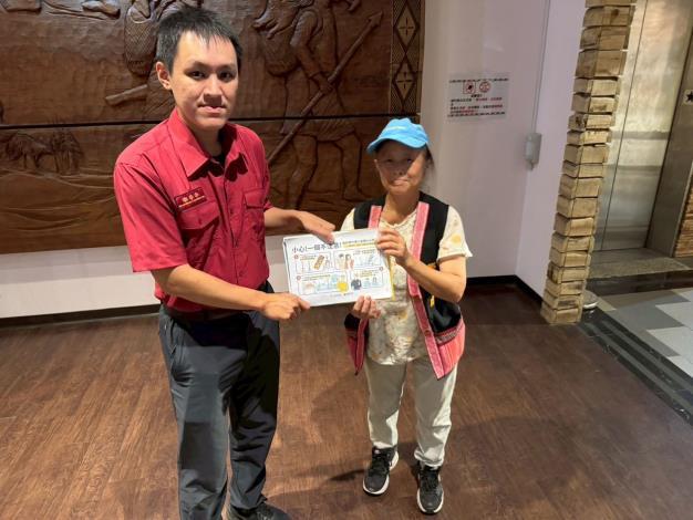 苗栗縣政府消防局泰安分隊利用中秋連假人潮聚集時,前往泰雅文物館進行爆竹煙火安全宣導。