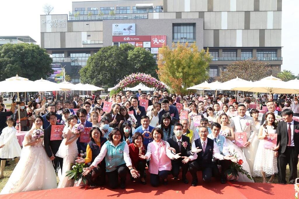 嘉義市第41屆市民集團結婚,今(8)日在著名景點「森林之歌」舉行,共45對新人參加,其中有兩姊妹同日步上紅地毯,一家兩對新人雙喜臨門、喜氣洋洋。嘉義市長黃敏惠擔任證婚人、嘉義市議會議長陳姿妏擔任主婚人,姊妹市新竹市民政處長嚴翊琦代表新竹市高虹安市長擔任介紹人。隨著國內疫情趨緩,今年新人終於可以不用戴口罩,在眾人見證之下,新郎新娘交換戒指,並定格深情親吻彼此,現場甜蜜指數爆表。 黃敏惠市長首先感謝天公作美,給大家適合戶外證婚的好天氣,也謝謝林鐵處提供這麼好的婚禮場地,以及市府民政處同仁的用心規劃。許多家長都說,只要帶著愉悅的心情、人來就好。今年45對新人中有的是愛情長跑多年、有的是親友介紹,奇妙的緣分讓兩人相識相知,歷經愛情考驗,直到決定相守一輩子,這一路走來很不容易。市府團隊致力讓幸福不斷、不斷幸福,成為嘉義市的標竿,也作為新人最大的後盾,用心打造育兒友善環境,做好三育:「生育有津貼、托育沒煩惱、教育有希望」,祝福新人幸福美滿、多生貴子。 有2對新人是姊妹,姊姊吳雅筑和先生羅福星因工作認識,彼此相處融洽、生活習慣契合,決定攜手相伴;妹妹吳雅媛及先生蔡鈞翔是國中同學,兩人大學開始交往,愛情長跑11年,其中有一半時間是遠距離戀愛。雅媛認為「心要定、不被外在干擾」很重要,是他們維持戀情的秘訣。2對新人都覺得選在同一天完成終身大事,很有紀念性。吳爸爸既不捨又高興的說,兩位女婿很疼愛女兒,自己可以放心交棒,恭喜女兒找到最佳伴侶,「終於嫁出去了」。 吳家姊妹透露,各自有長期穩定交往的對象,但受疫情影響,遲遲未能決定婚期與婚禮形式,加上比較喜歡小型家宴婚禮,且姊姊雅筑曾經參加朋友2019年的集團婚禮,留下良好印象。她們一致認為,集團結婚不僅能滿足穿上夢幻白紗的期待,活動流程也充滿儀式感,是長輩可接受的折衷方式,致贈的禮品豐富又實用,感謝嘉義市政府,讓新人多了一種婚禮選擇。 新人郭哲男與黃靖如分享,還沒正式交往前的第三次約會,靖如第一眼看到哲男的襯衫,內心暗自驚訝,因為與自己穿得藍色花格子長裙非常相似,她心想該不會是命中注定吧。意外的情侶穿搭,讓兩人覺得很難得,還特別拍照留念,同時快速加溫這段感情。小倆口交往3年後順利結為連理,這兩件定情物,也成為他們的婚紗便服照,既甜蜜又有特殊意義。 民政處表示,今年一樣由嘉義市香格里拉室內樂團,熱情演出優美的樂聲,營造熱鬧、喜悅氣氛;崇仁醫護管理專科學校美容保健科20位同學,擔任婚禮親善大使,引導新人步向幸福甜蜜的未來;北興國中的童軍協助維持活動會場秩序,帶來滿滿活力和朝氣。 市民集團結婚已邁入第41屆,活動辦得相當成功,深受各界好評,同時提供豐盛賀禮,嘉義市府送「43吋液晶電視」、市議會致贈「德律風根吸塵器」,姊妹市新竹市府贈送「高級實用微波爐」。另有嘉義郵局製作精美「個人化郵票」及致贈「高級青花磁碗盤組」、嘉義市城隍廟的註生娘娘加持「金鏟子」、嘉義市地藏庵「玫瑰對杯」、「幸福提袋」、萬年水塔國際通企業股份有限公司「不鏽鋼湯匙組」、詠順科技股份有限公司提供「拍照創意映像輸出」、樂億皇家渡假酒店特別提供給幸運的3對新人住宿卷等,讓新人帶著祝福滿載而歸。