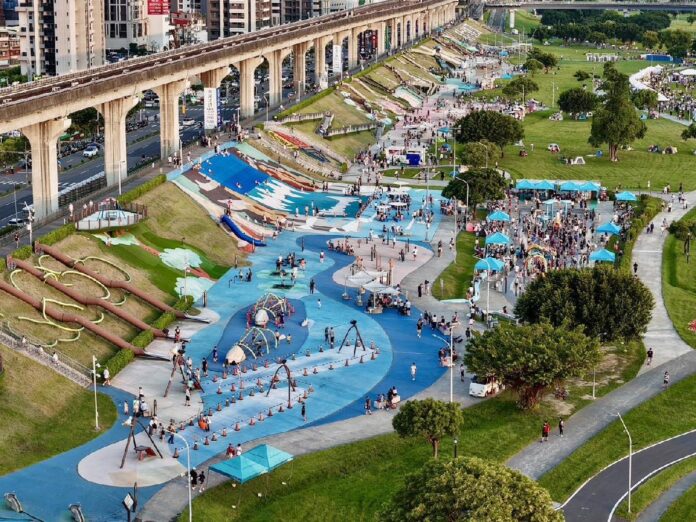 新北大都會公園今年1至7月吸引超過2571萬人次到訪(交通部觀光署統計數據),成為全台最強景點,其中「熊猴森樂園」全長約800公尺、寬約50公尺,是全國最大的堤坡兒童遊戲場。為了讓家長與孩童能在廣闊的遊戲場安心遊玩,新北市政府高灘地工程管理處特別在堤頂明顯處設置「定位指標牌」,民眾只要報出指標牌上的號碼,就能迅速確認所在位置,方便親友尋人或集合。