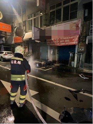 苗栗縣政府消防局救災救護揮中心於本(10)月8日凌晨接獲報案,苗栗市青苗里發生機車火災,立即派遣苗栗分隊消防車及救護車前往搶救,共計出動消防車3輛、消防人員7名。現場為三台機車起火燃燒並且發現一名患者,消防員立即佈一水線將火勢撲滅,並以熱顯像儀確認無殘溫後返隊。
