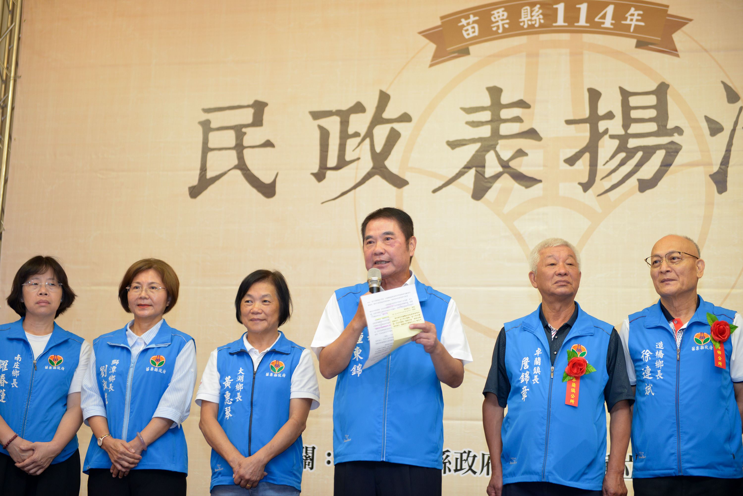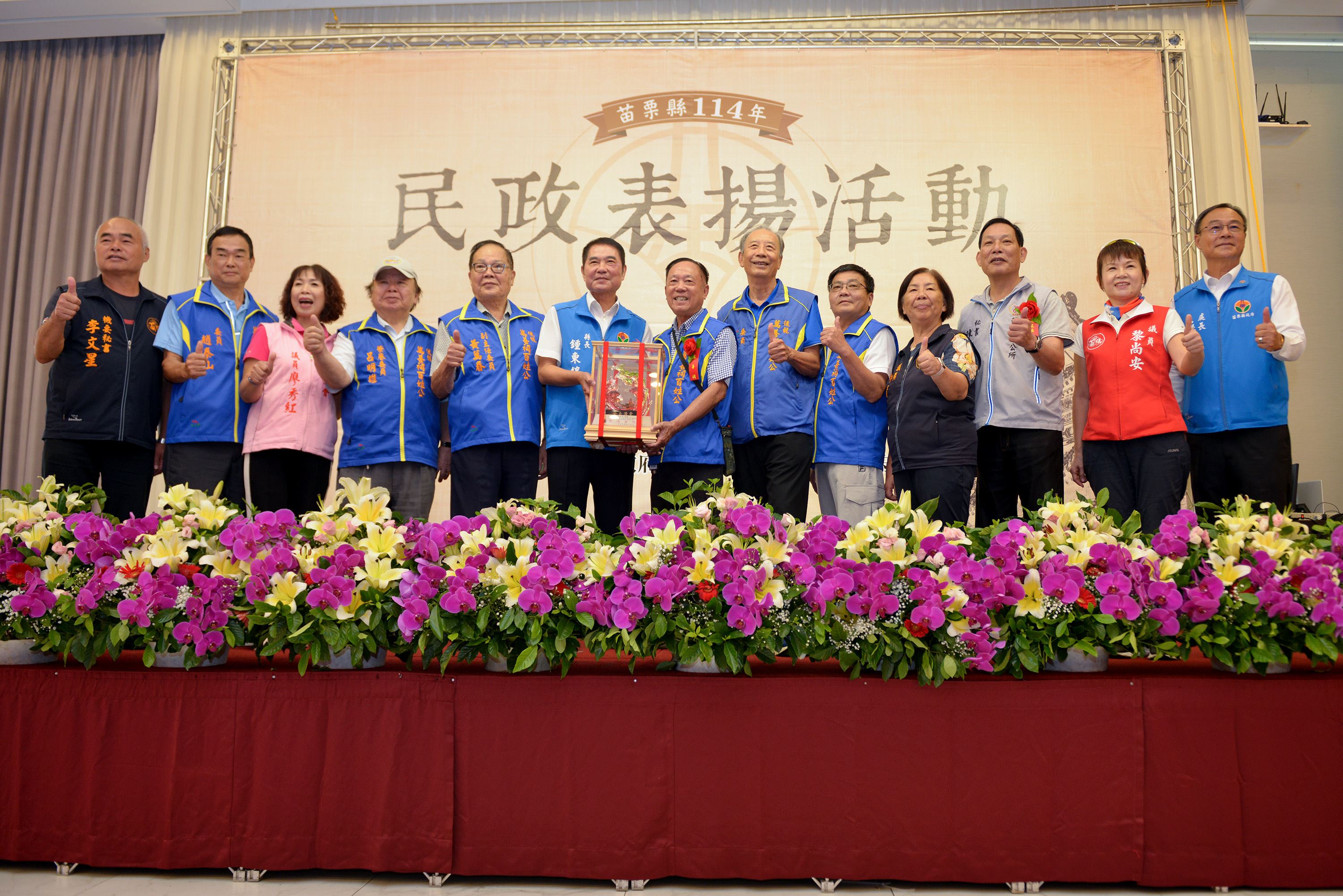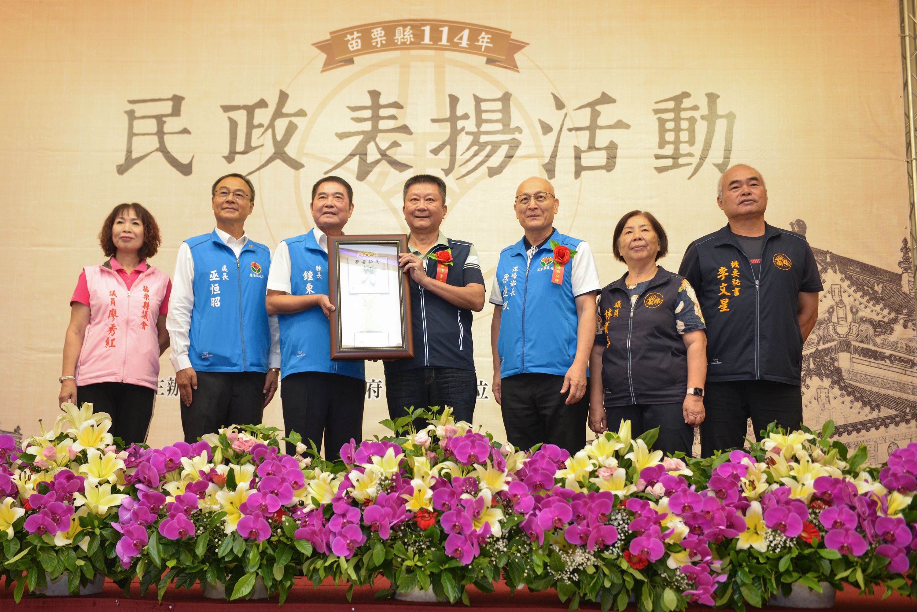 8日苗栗縣長鍾東錦以及各級民意代表、貴賓等逐一頒發匾額、獎牌、禮品,感謝受獎者和單位站在第一線為民服務的辛勞。鍾縣長表示,村里長是地方上的土地公,還有民政人員及戶政人員,是民眾與政府之間最重要的溝通橋樑,是縣政推動的基石。