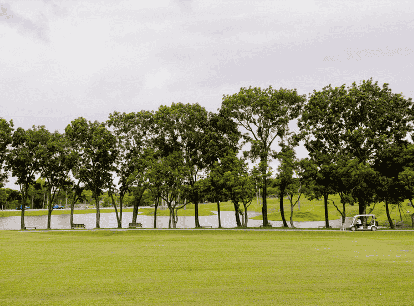 公園處補充,園內同時保存2,658株樹木,包括七里香、大葉桃花心木、榕樹與樟樹等,並逐一建立健康檔案。設施設計強調自然友善與循環利用,例如將倒木再製為原木座椅,散布於園區各處,營造出輕鬆自在的休憩氛圍。果嶺公園的啟用,不僅展現土地再生與公共性的實踐,也呼應「30×30全球生物多樣性目標」。作為亞洲首座簽署《柏林城市自然公約》的城市,將持續落實永續承諾,並與市民攜手守護這片新生的公共綠地。