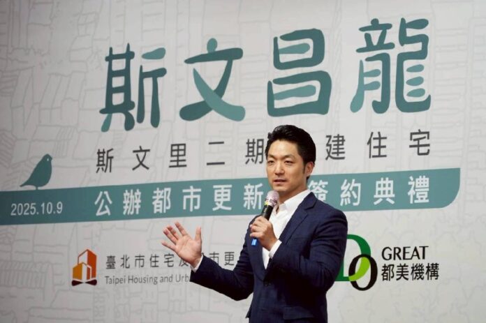 臺北市長蔣萬安今(9)日出席「斯文昌龍」公辦都更簽約典禮,與各界共同見證蘭州斯文里整建住宅地區第一件成功招商的公辦都更案正式簽約。蔣萬安表示,這不僅開啟北大同核心區全新地標的起點,更象徵市府推動都市更新邁出關鍵一步、取得具體成果,具重要指標意義。