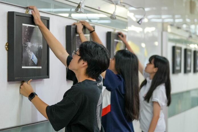 展覽內容涵蓋暑期優秀作業及攝影課的傑出創作,展現學生在多元媒材與主題上的創意探索。今年也適逢創辦人逝世十週年,也特別將創辦人生前墨寶與學生作品共同展出,象徵辦學精神的傳承與藝術教育的延續。有同學分享,作品靈感來自與朋友在宜蘭濱海留下的回憶,海風輕拂、笑聲飛揚的瞬間被相機捕捉,經過後期調色與構圖調整後,完成最理想的畫面,最終被老師選入展出。