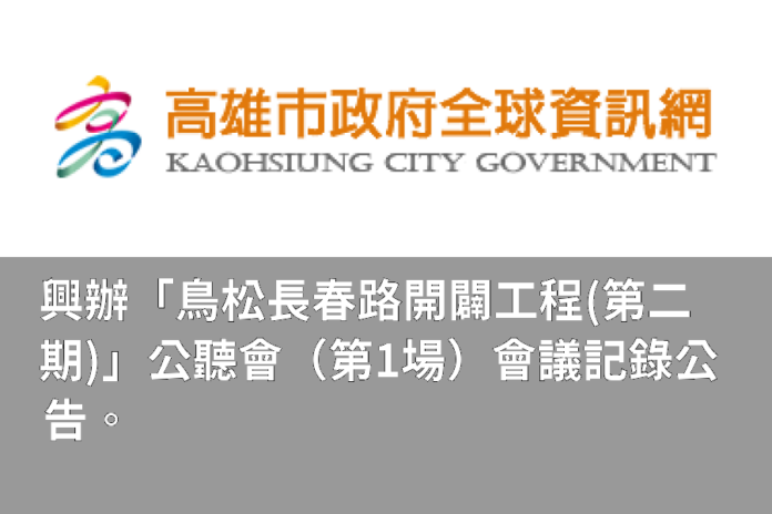 南部新聞高雄市興辦「鳥松長春路開闢工程(第二期)」公聽會(第1場)會議記錄公告。 南部新聞高雄市 興辦「鳥松長春路開闢工程(第二期)」公聽會(第1場)會議記錄公告。 編輯 劉 大龍 2025-10-13 依據:土地徵收條例第10條第2項,土地徵收條例施行細則第10條第1項第4款、「徵收土地範圍勘選作業 要點第3、4、5點」。 公告事項:興辦「鳥松長春路開闢工程(第二期)」公聽會(第1場)會議記錄 公告及函及會議紀錄.pdf 延伸閱讀 商情 高雄麗睛眼鏡公司-NIKON視光體驗中心 陽明店新開幕 商情 AI取代好萊塢?23歲天才把電影院變成自媒體教室 商情 屏東平價小火鍋:百元就開吃 自助吧無限享用超滿足! 商情 高雄必吃鍋燒麵:藏在小港的原味日常 吃出安心與溫度