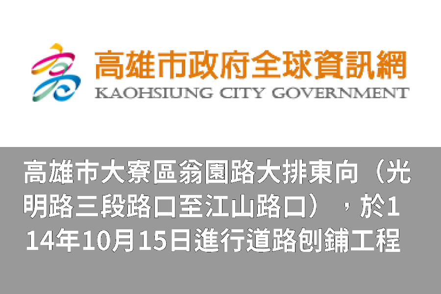 高雄市大寮區翁園路大排東向(光明路三段路口至江山路口),於114年10月15日進行道路刨鋪工程