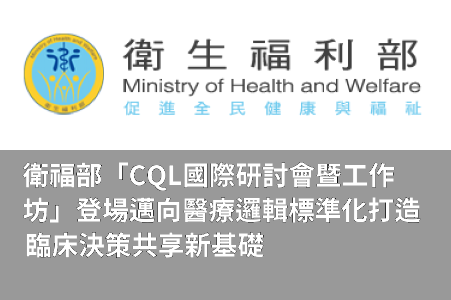 為加速我國醫療資訊標準與國際接軌,本部辦理「CQL 國際研討會暨工作坊」。訂10月13日(一) 09:00至16:30於 臺大醫院國際會議中心 101廳舉辦。
