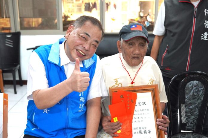 陳見賢今天拜訪的人瑞當中,年紀最長的為103歲的宋增土先生,宋增土育有6兒3女,平日在廟裡擔任志工,協助鄉民量測體溫及血壓,還曾經當選模範父親,也捐地蓋路造福鄉里。宋增土保持開朗心態,也待人和善,多年來參加新竹縣新豐鄉「天天開心隊」,還榮獲114年長者活躍老化競賽北區競賽金牌,明天(15日)還要北上比賽,活力十足!除此之外,他也是知名歌手Hebe的外公,讓人津津樂道。