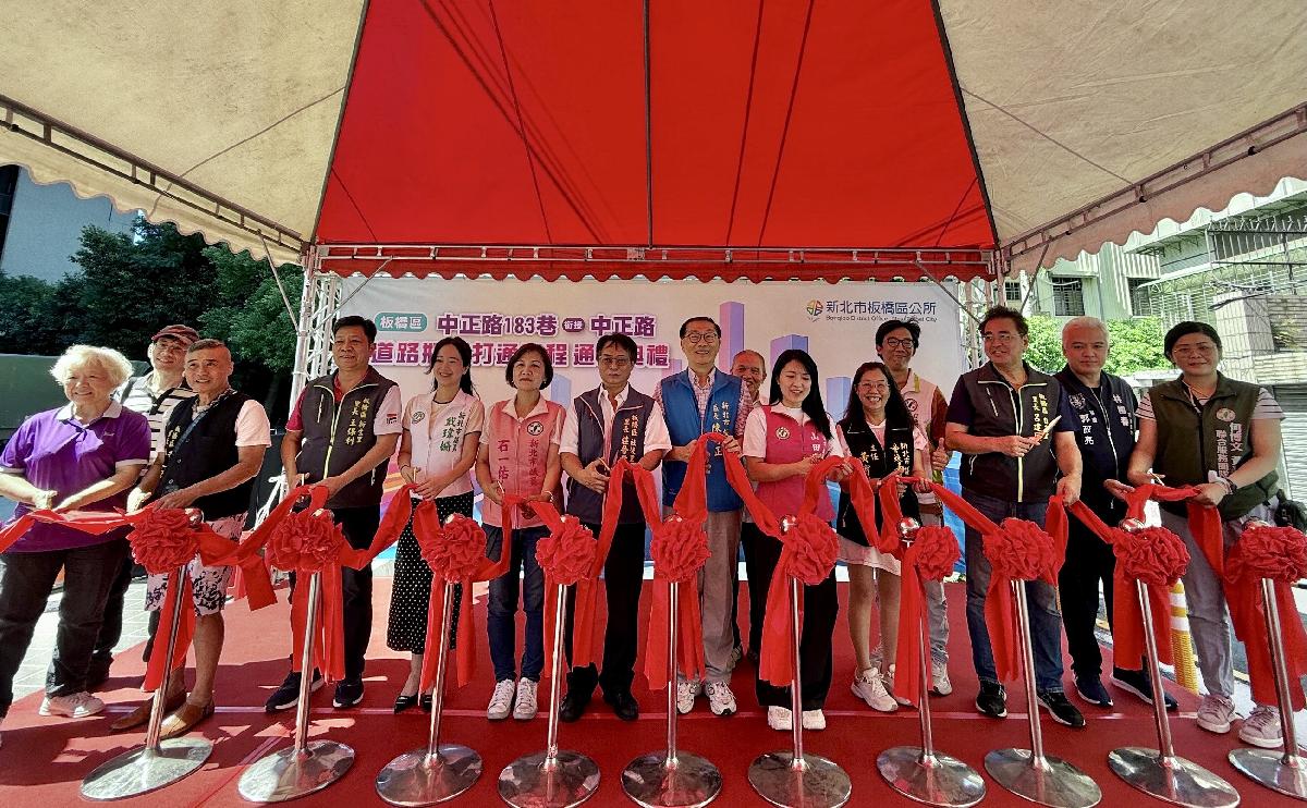 板橋區中正路183巷道路瓶頸打通路段全長約80公尺於10月15日完工通車,瓶頸打通後中正路183巷(中正路至中正路183巷11弄巷口)由原巷弄的機車雙向、汽車單向通行,調整為汽、機車皆一進一出單向通行,讓行車動線簡化,並串聯中正路及民權路,提供民眾更加順暢、便利的交通。