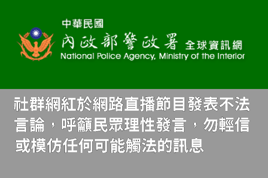 (二)刑事局會同新北市政府警察局共組專案小組,已於114年10月15日下午14時依法通知陳嫌到案說明,以釐清案情。 (三)刑事局在此呼籲社會大眾,在網路發表言論前應審慎思考,確認訊息的真實性與合法性,切勿輕信、轉傳或模仿任何可能觸法的訊息。真正的言論自由,建立在法治的基礎之上,任何違法行為都將承擔相應的法律後果。請民眾自律守法,共創健康、友善的網路環境,拒絕任何形式的仇恨與暴力言論,共同守護民主社會的珍貴價值。