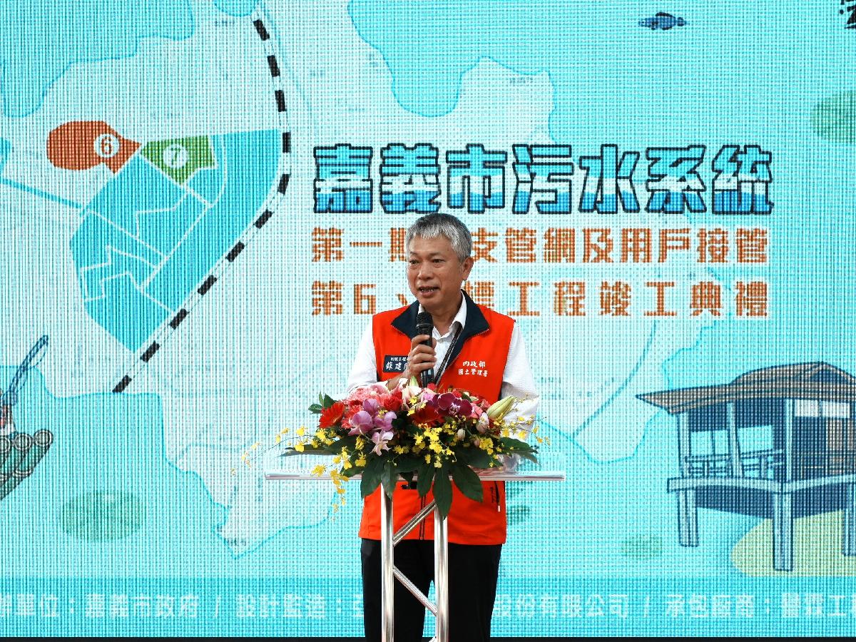 • 內政部國土管理署副總工程司蘇建隆今(17)日出席「嘉義市污水系統第一期-分支管網及用戶接管第6、7標工程」竣工典禮_致詞