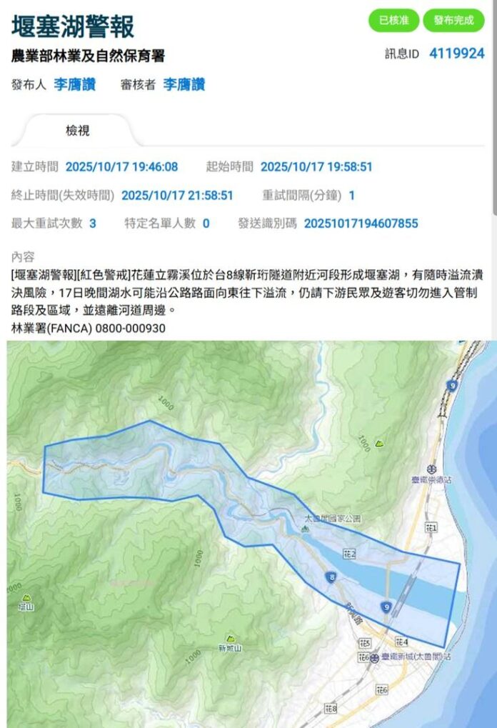 觀光旅遊因應立霧溪堰塞湖,太魯閣國家公園全園區禁止進入,並請山區民眾盡速全數撤離。 觀光旅遊 因應立霧溪堰塞湖,太魯閣國家公園全園區禁止進入,並請山區民眾盡速全數撤離。 編輯 李 沛君 2025-10-17 太魯閣國家公園管理處呼籲,林業保育署已發送第三次立霧溪堰塞湖細胞廣播簡訊,提醒民眾夜間可能有湖水沿路面往東向下流動,太魯閣國家公園全園區禁止進入,並請山區民眾盡速全數撤離。 Tags太魯閣國家公園 延伸閱讀 商情 台中城宏玻璃 推出光盾玻璃引領建築節能服務全台地區 商情 台中城宏玻璃–全台節能玻璃推薦、專業玻璃施工 商情 新北鑫龍馨專業冷氣提供大台北全方位安裝維修保養服務 商情 鑫龍馨冷氣空調–台北中央空調系統、新北樹林冷氣安裝