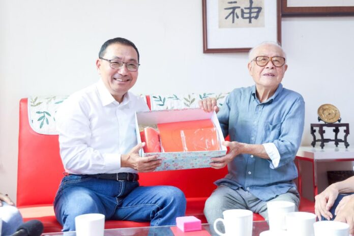 重陽節即將到來,新北市長侯友宜今(18)日特地前往林口區探視102歲人瑞沈軏,並送上紅宣紙與金鎖片,表達祝福之意。他表示,台灣即將邁入超高齡社會,對長輩的關懷及照顧,是市政重要的一環;很高興看到沈伯伯夫婦都相當健康快樂,希望大家以他們為榜樣,持續學習、樂活高齡。