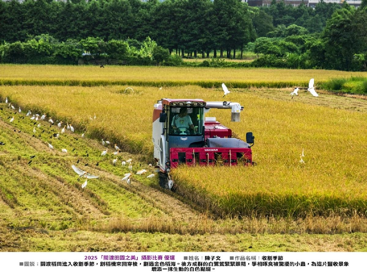 關渡平原被譽為「臺北市綠寶石」,擁有豐富的農業資源與田園景觀,當金黃色的夕陽灑在隨風搖曳的稻浪上,台北這塊綠色稻海即散發出療癒心靈的美麗訊息!臺北市政府產業發展局為促進民眾對在地農業的支持與關懷,共同守護這片寶貴的田園景觀,特辦理2025「關渡田園之美」攝影比賽,邀請民眾一起來投稿,期望透過攝影紀錄農民的努力、農村生活的美好。