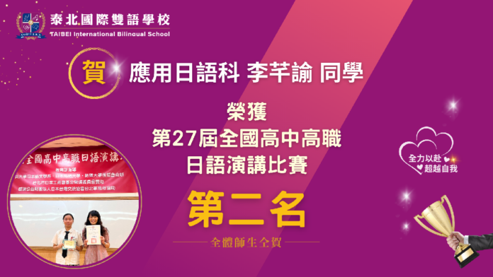 【主題:第27屆全國高中高職日語演講比賽 泰北高中再傳捷報 李芊諭同學榮獲全國第二名 日語教育成果亮眼】