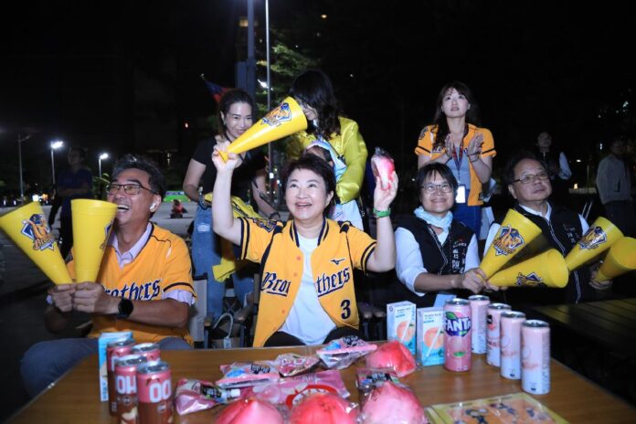 中職2025台灣大賽進入激戰,台中市政府今(21)日晚間於市府前廣場舉辦中信兄弟第三戰戶外直播應援活動,吸引大批球迷齊聚吶喊。市長盧秀燕在運動局長游志祥陪同下親臨現場應援,笑稱「一定要贏!」並表示若兄弟再奪冠,市府將舉辦城市大遊行,感謝球員為台中帶來榮耀。她特地準備專屬球衣、加油棒及「桃子造型豆沙包」、「蜜桃飲」,象徵「台中嗑桃子、中信克桃猿」,帶動全場熱情。