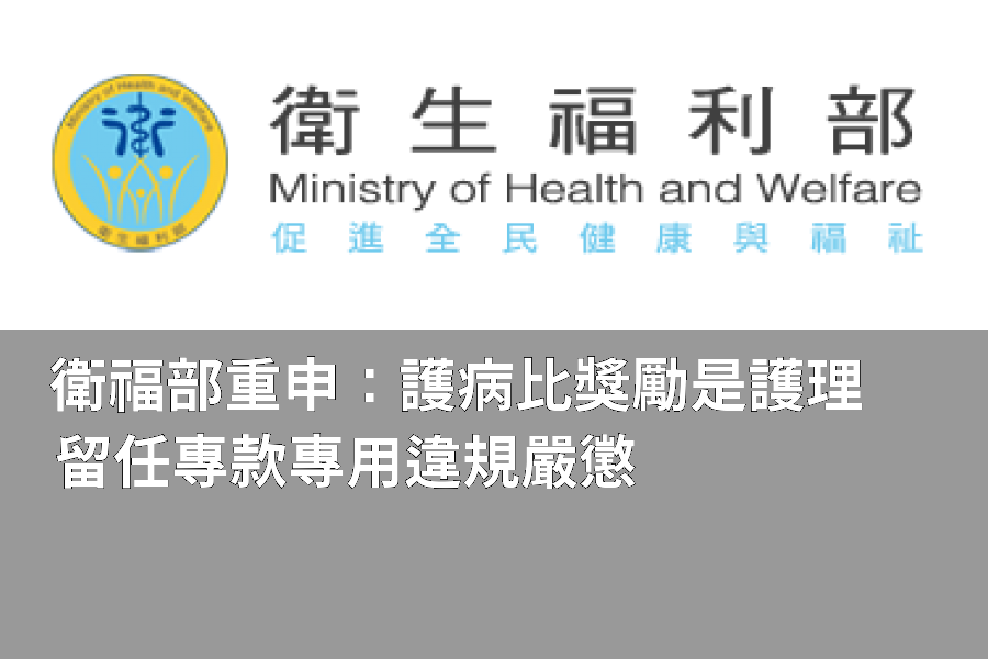 衛福部強調,「三班護病比達標醫院獎勵」計畫於5月6日公告時,已明確規定獎勵應「專款專用」,限用於護理人員之指定用途,醫院應統籌運用於醫院護理人員,依各院護理人力流失之影響因素做差異性留任措施,醫院並應於院內主動公開獎勵金分配方式,向護理人員說明使用原則;該獎勵亦不得替代醫院原應核予之薪資及獎勵金。