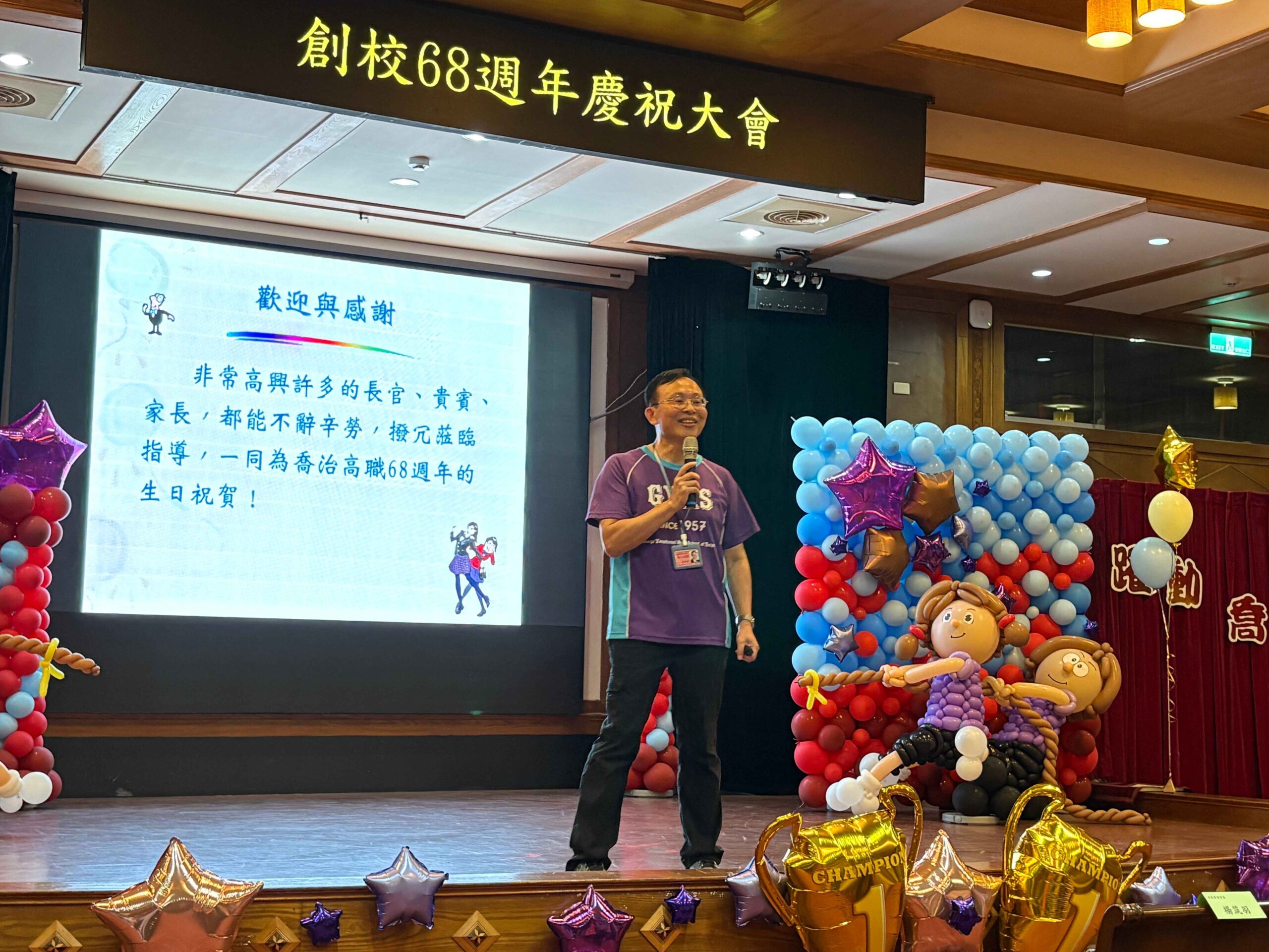 慶祝大會盛況空前,教育局許巧華督學、信義區方英祖區長、大安區黃光慧課長等、教育界及產業界貴賓皆親臨致賀,場面溫馨隆重。創辦人俞禮亮博士、俞禮正董事長、再次回顧報告喬治68年前響應政府私人興學教育振興國力的號召,培育國家棟樑。高校長更是發表年度成果報告,分享師生在技能競賽、升學成果及多元課程發展的亮眼成績。家長會李雁婷副會長展現喬治家長會的熱情熱力,更鼓勵學子學有所成,要感恩回饋。當悠揚校歌響起,全體師生與貴賓圍繞著校慶蛋糕齊唱生日快樂,場面溫馨感人,象徵喬治精神的傳承與再啟航。