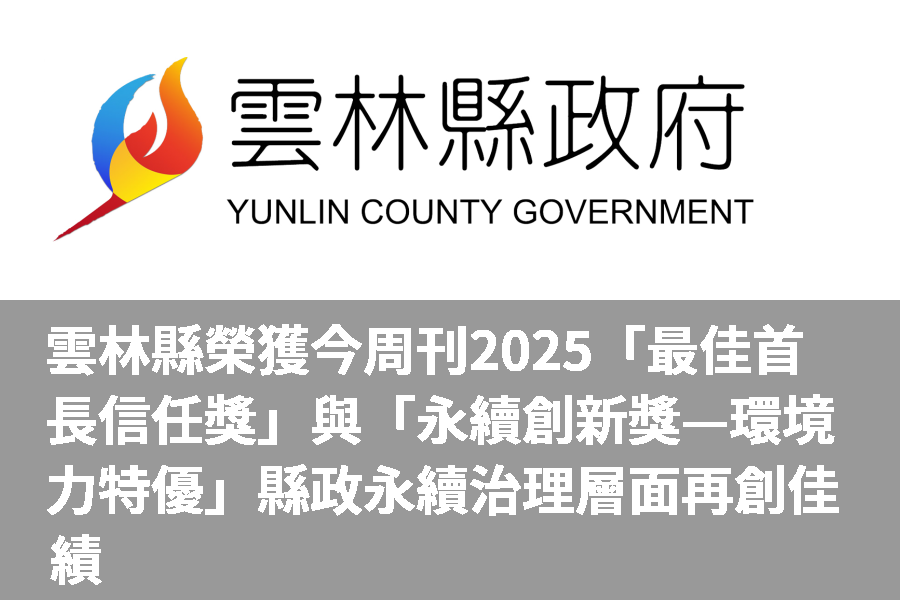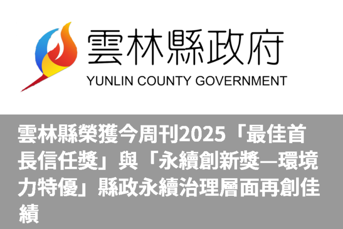 雲林縣榮獲今周刊2025「最佳首長信任獎」與「永續創新獎— 環境力特優」 縣政永續治理層面再創佳績