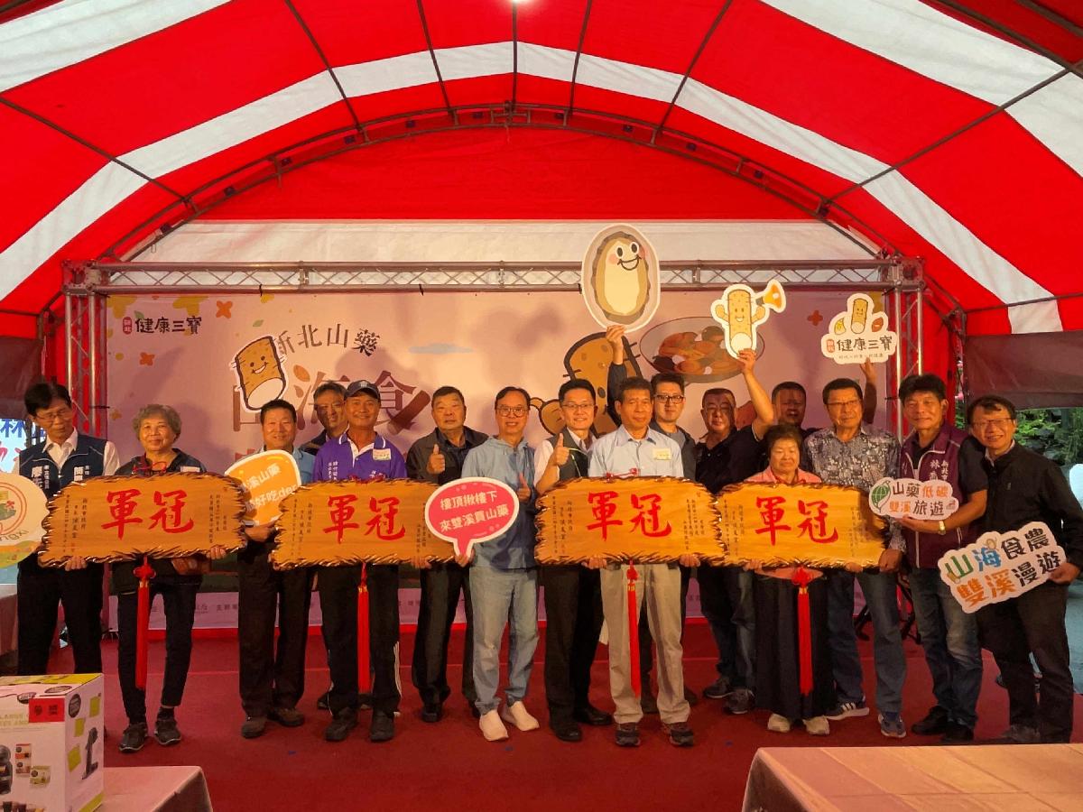 於今(24)日在雙溪平林農場舉辦「新北山藥-山海食農饗宴」展售會,鼓勵民眾至山藥產地旅遊。本次由石門區簡佑穎奪得原生種山藥-穴管栽培組冠軍,農業局頒發冠軍匾額,鼓勵農友持續精進栽培技術,歡迎民眾至山藥產區享受美食及遊玩。