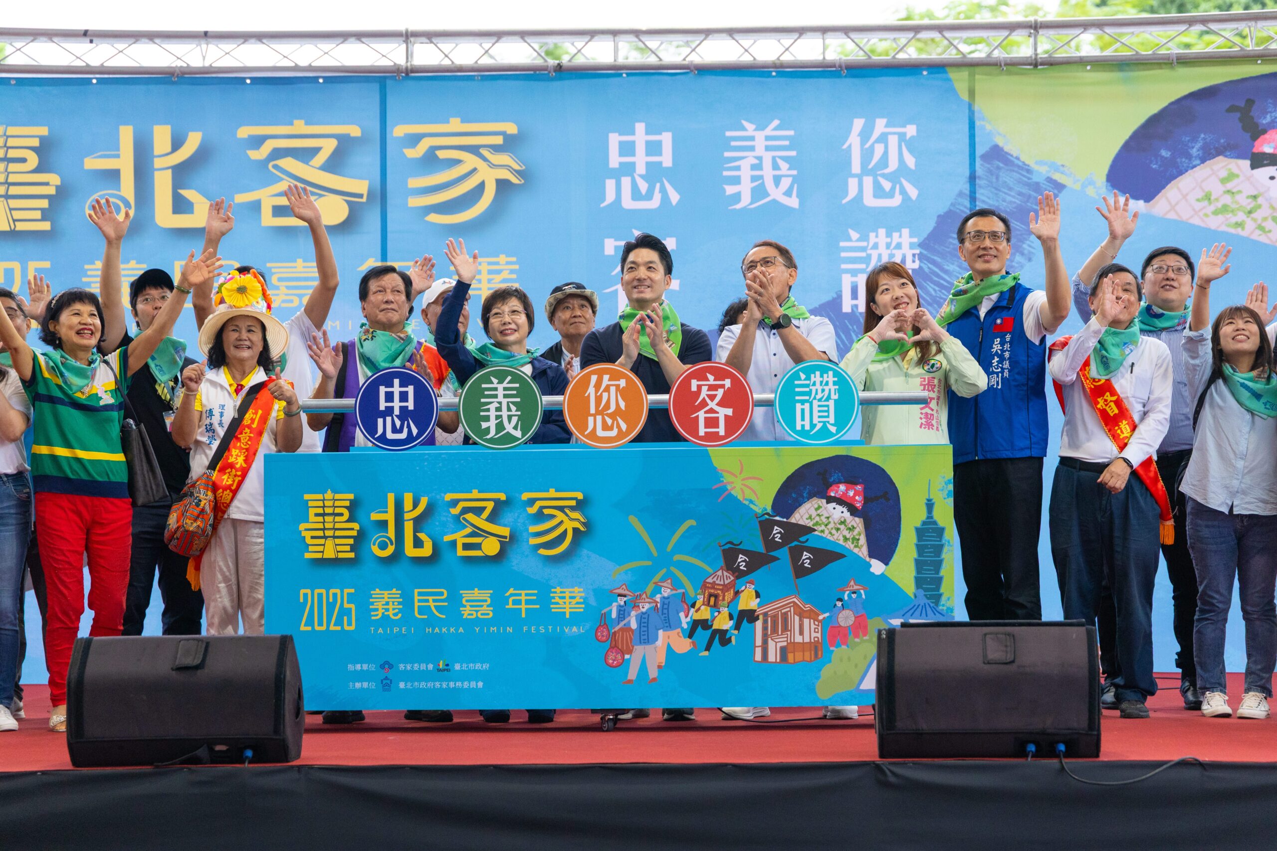 蔣市長致詞時表示:「今年我們又在臺北客家義民嘉年華見面了!」他開心地說,臺北客家越來越國際化、年輕化,看到這麼多青年、家庭、團體一起參與,讓整個城市充滿活力與感動。市長也特別邀請大家:「一起來給臺北客家一個讚──客讚!」他進一步指出,客家原鄉是根,我們不能忘本;臺北是多元友善的城市,市府會全力支持更多有創新的客家文化活動,讓客家文化在臺北這座城市發光,讓世界看到客家文化的魅力。
