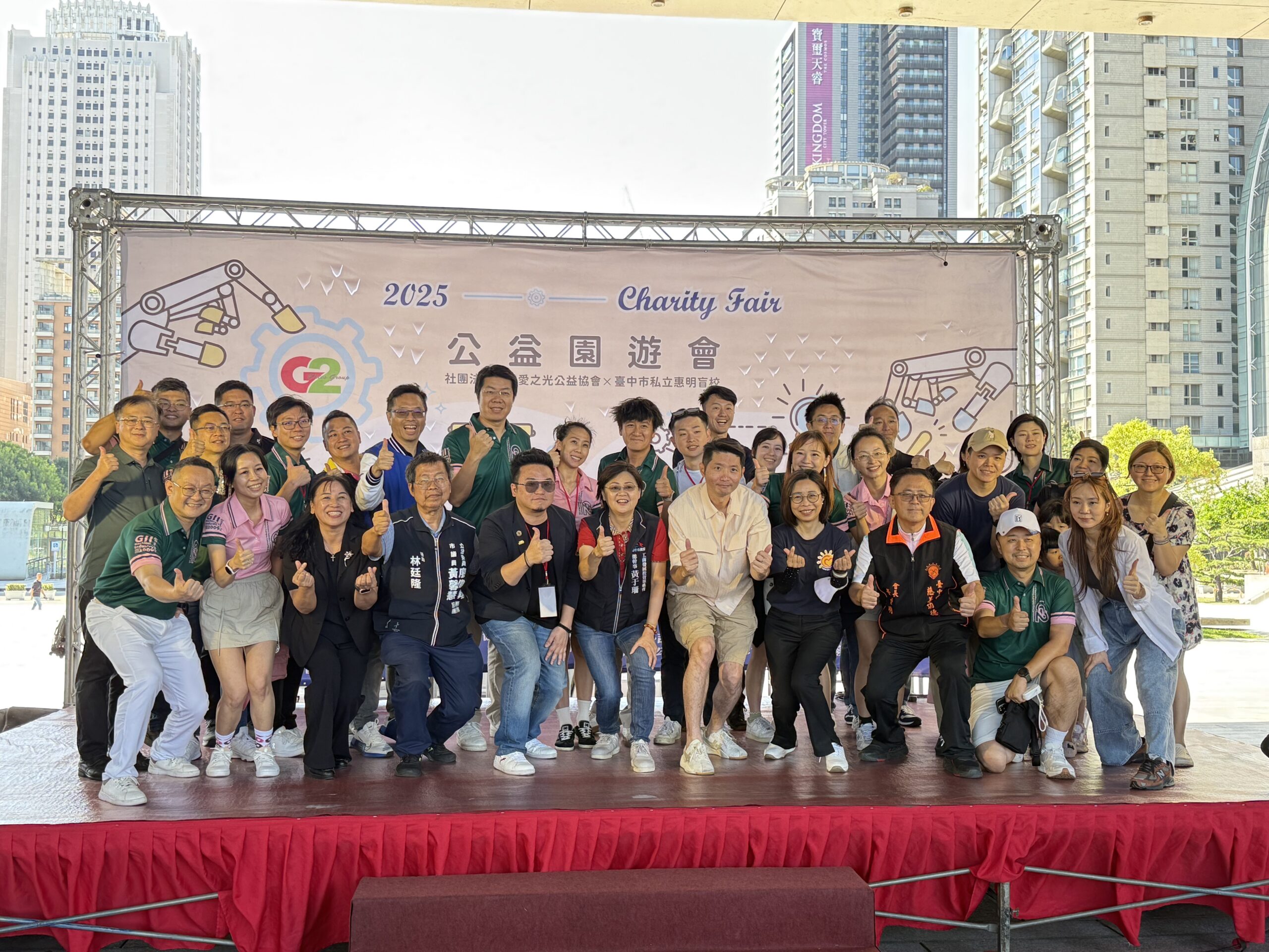台中市機械業二代協進會今(26)日於台中市政府中央挑高川堂舉行「G2公益園遊會」,現場集結近40個多元攤位,包含美食、遊戲、文創與親子體驗,邀請協會會員和市民朋友一同共襄盛舉,以行動傳遞愛心。台中市政府經濟發展局表示,活動所得扣除成本後,將捐贈予「社團法人台灣愛之光公益協會」及「台中市私立惠明盲校」,支持護眼防盲教育與視障者照護,展現產業界回饋社會、凝聚善念的行動力。