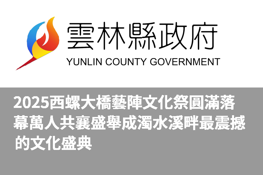 隨著兩天活動圓滿落幕,成功吸引超過25萬人次熱情參與。其中,首日登場的千人書法揮毫活動更締造歷年新紀錄,展現雲林豐厚的人文氣息與民眾對傳統藝術的熱情。「西螺大橋藝陣文化祭」已成功奠定雲林縣年度指標性品牌地位,未來將持續深化策展能量、拓展國際交流,讓地方精神不僅深耕在地,更能躍上國際舞台,向世界展現雲林的魅力與創新活力。