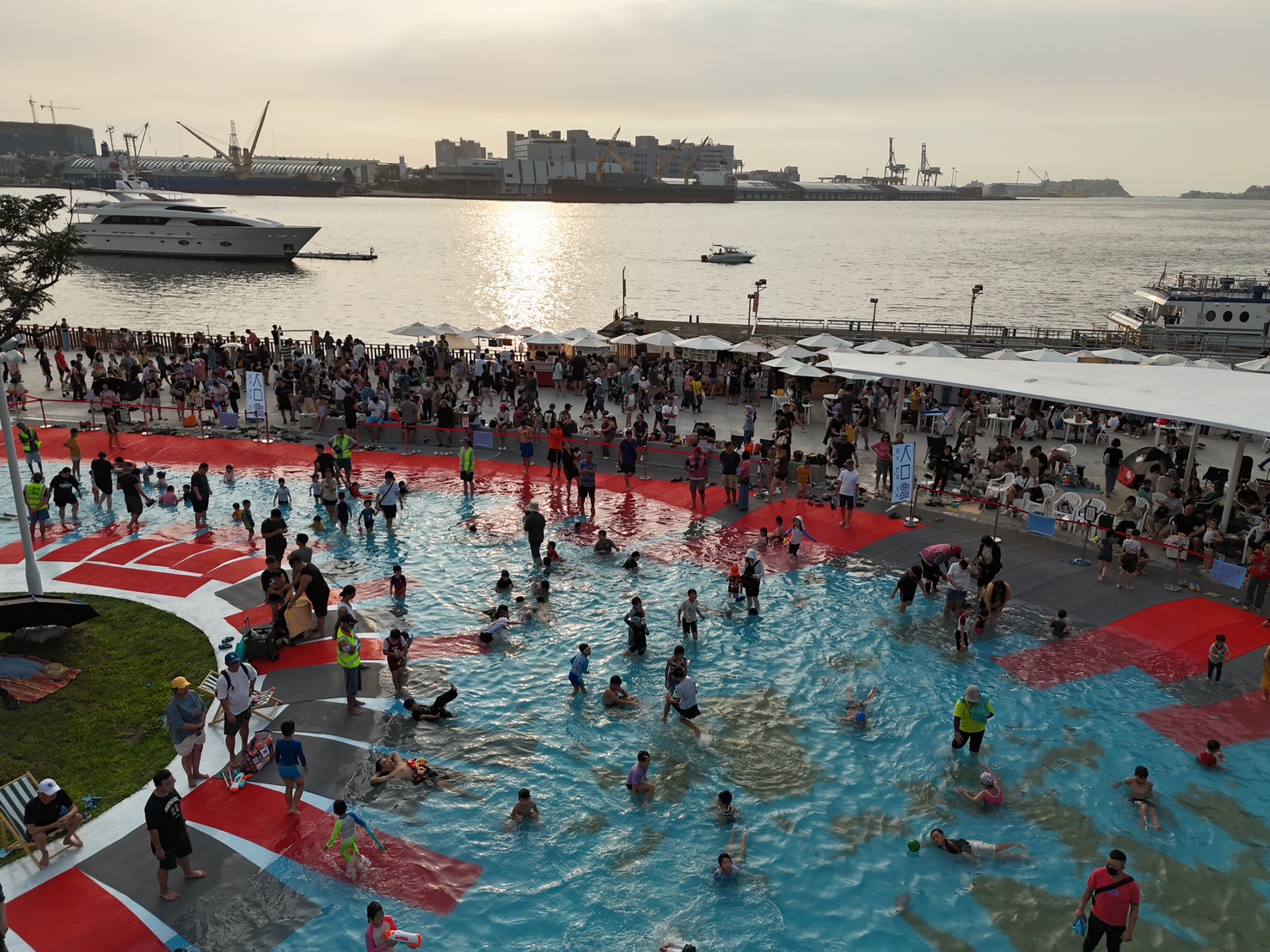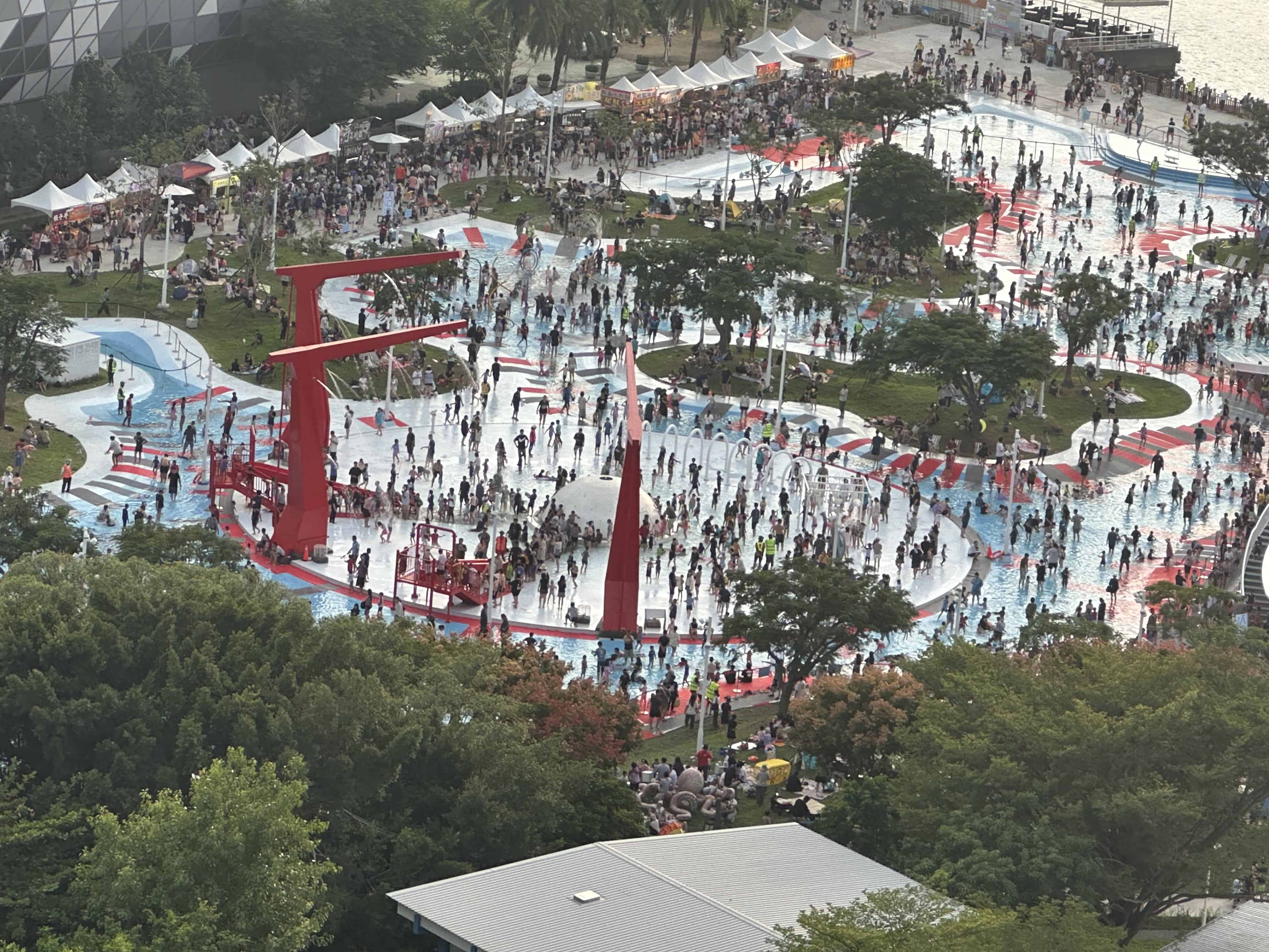 • [圖2]俯瞰星光水岸公園戲水區,民眾熱情同樂。