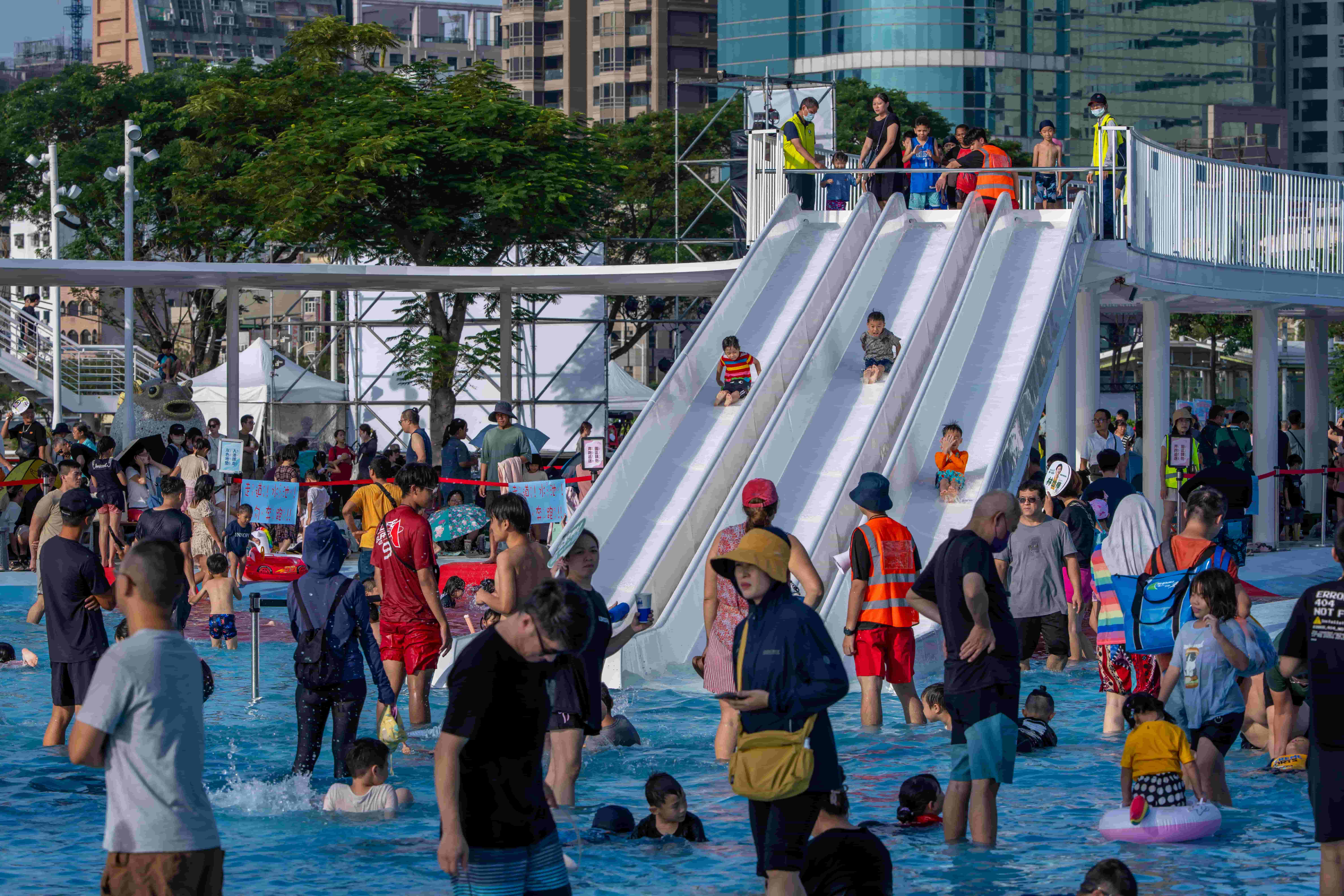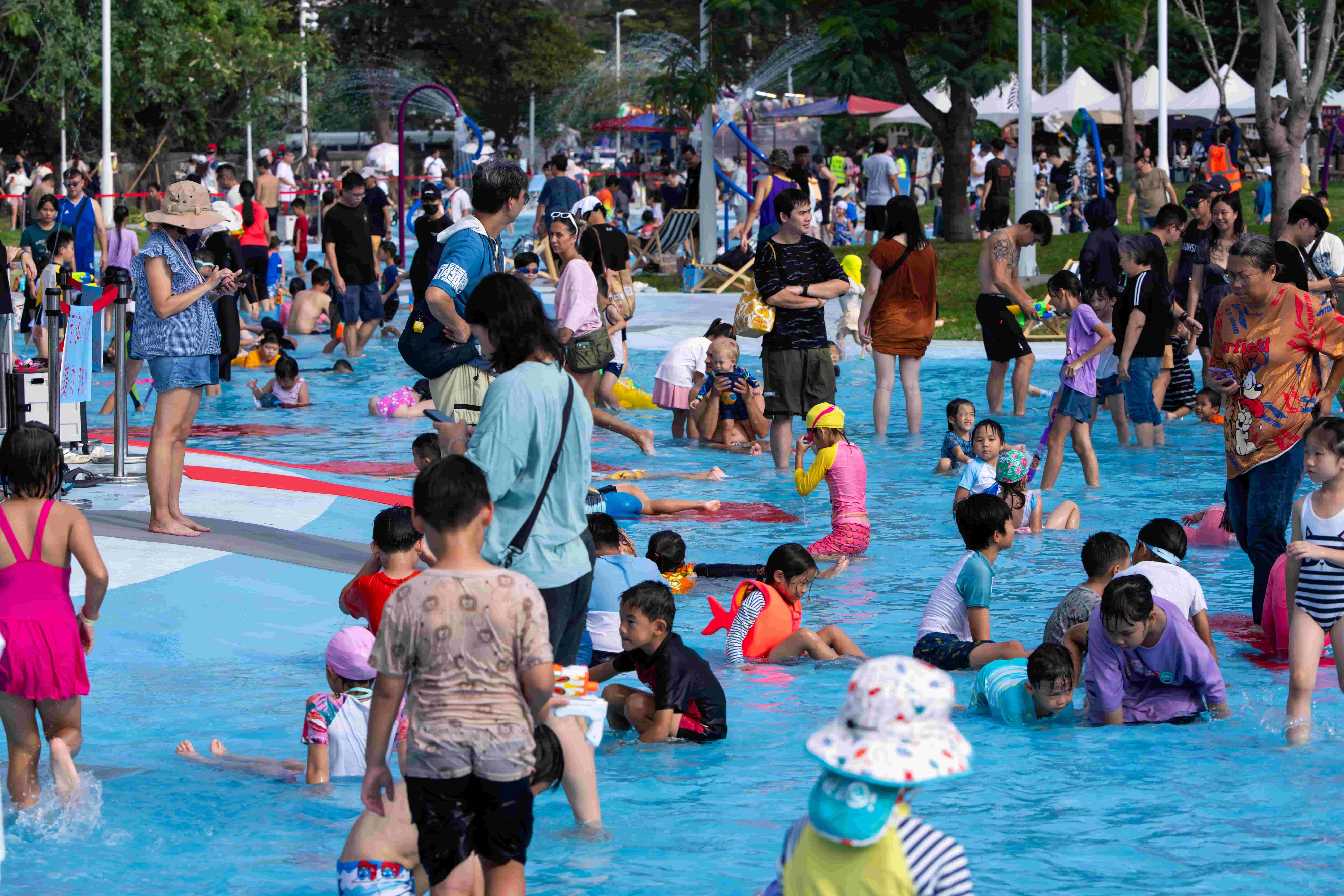 工務局表示,試營運期間已聯合相關局處投入人力,維護戲水安全並加強宣導注意事項;並將依據實際使用情形持續優化與改善設施,確保安全與品質,同步了解民眾需求與意見,作為園區後續設施設計與戲水動線等空間優化與精進之參考。