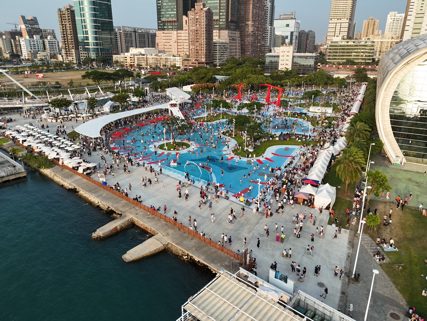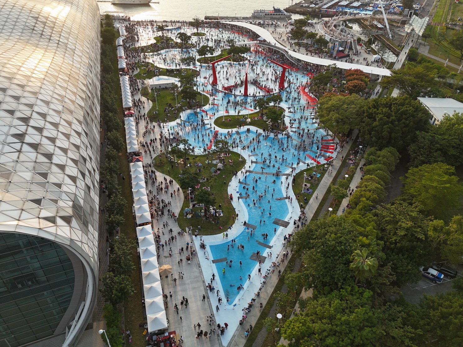 高雄最受矚目的親水新亮點「星光水岸公園」自10月24日開放試營運以來,吸引眾多大人小孩熱情造訪,10月24、25日兩日入園總人次已逾5萬;港景與水域設計深獲好評,許多市民讚許能在港邊戲水、賞景,是高雄秋日最愜意體驗。