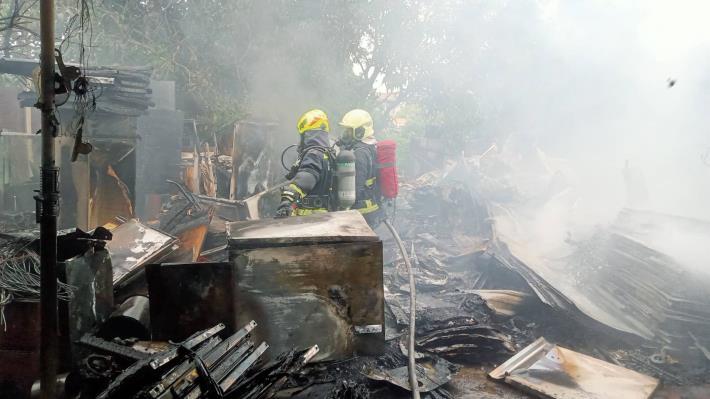 竹南車組抵達現場後,發現為堆放木材與雜物起火燃,產生大量黑煙直竄天際,消防人員立即布署2水線灌救,進行射水滅火,防止火勢延燒至鄰近建物,所幸今天是連續假日無人上班,在消防人員趕往灌救後火勢獲得控制,無人傷亡。